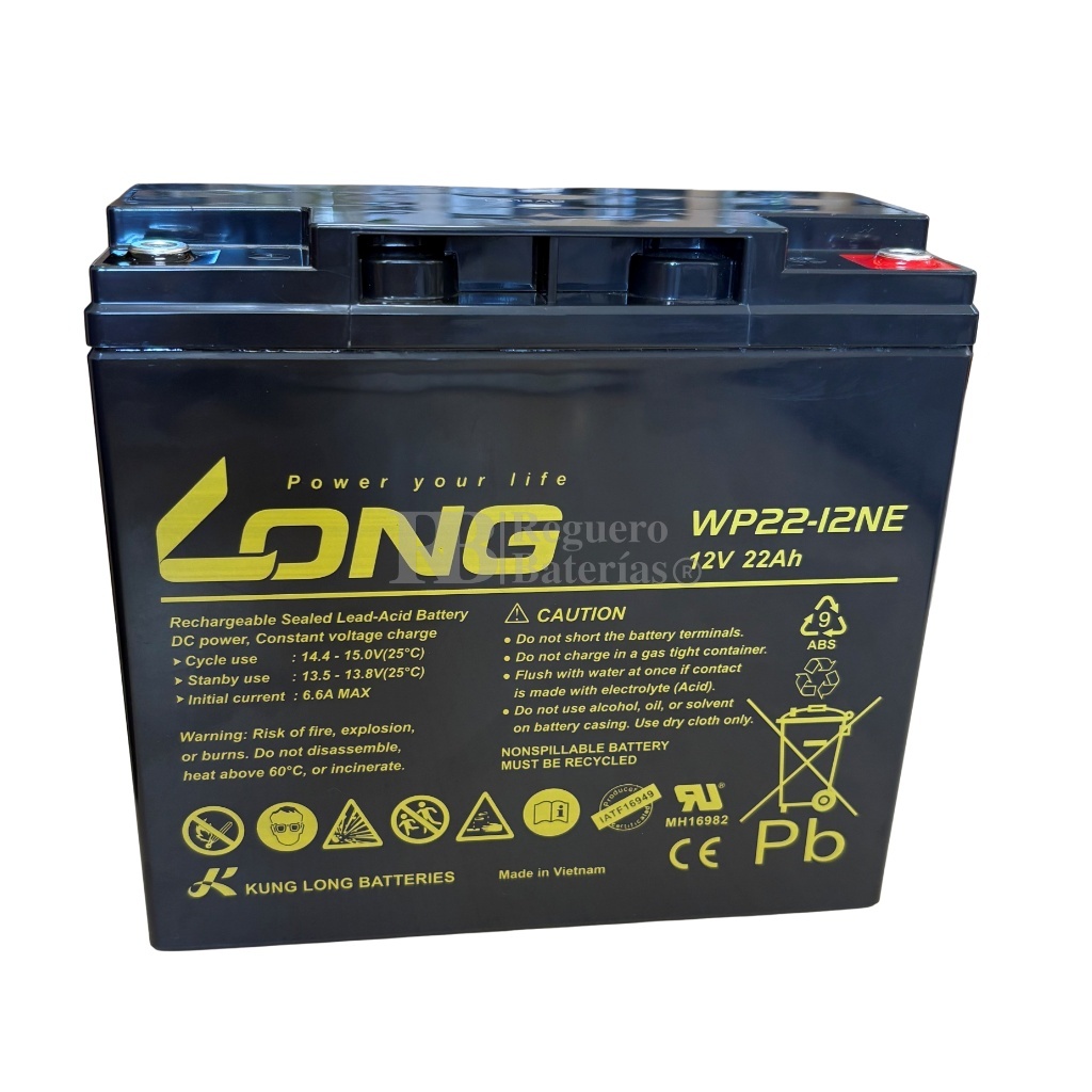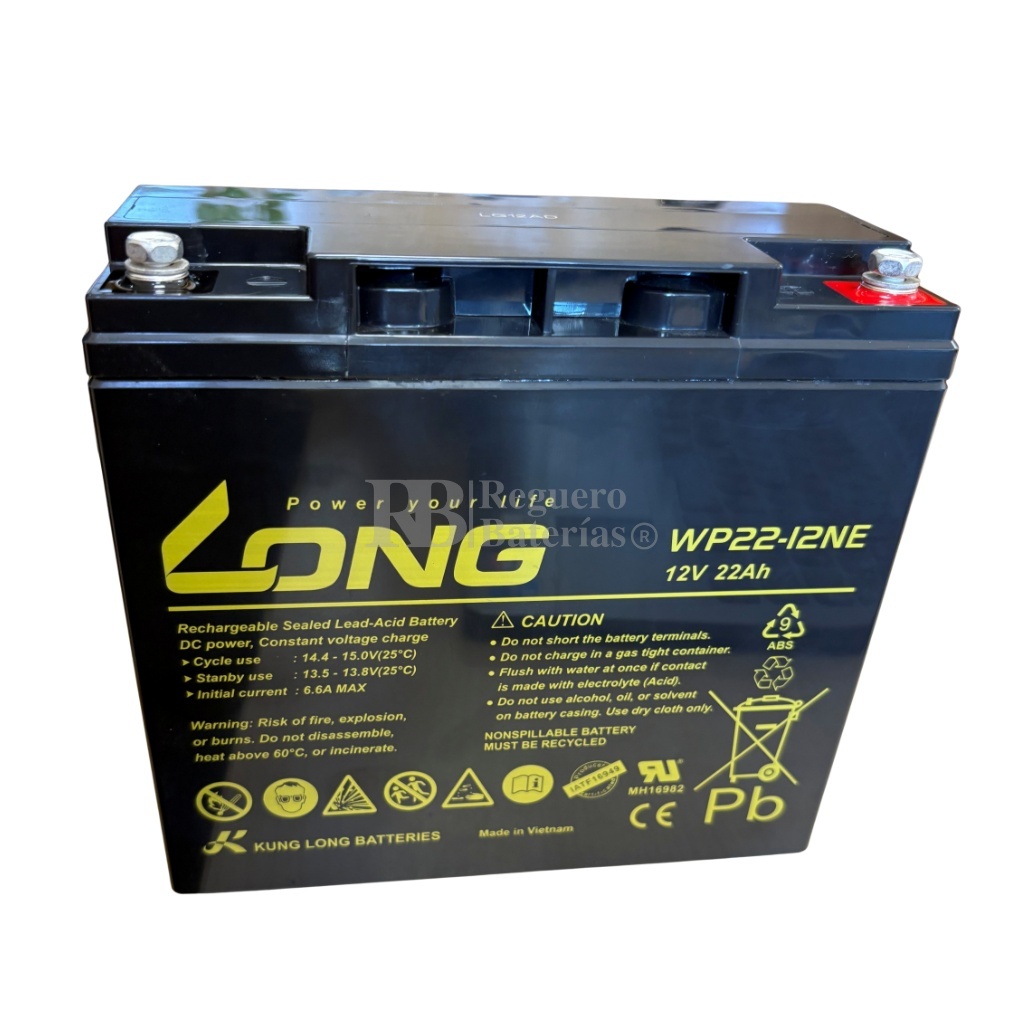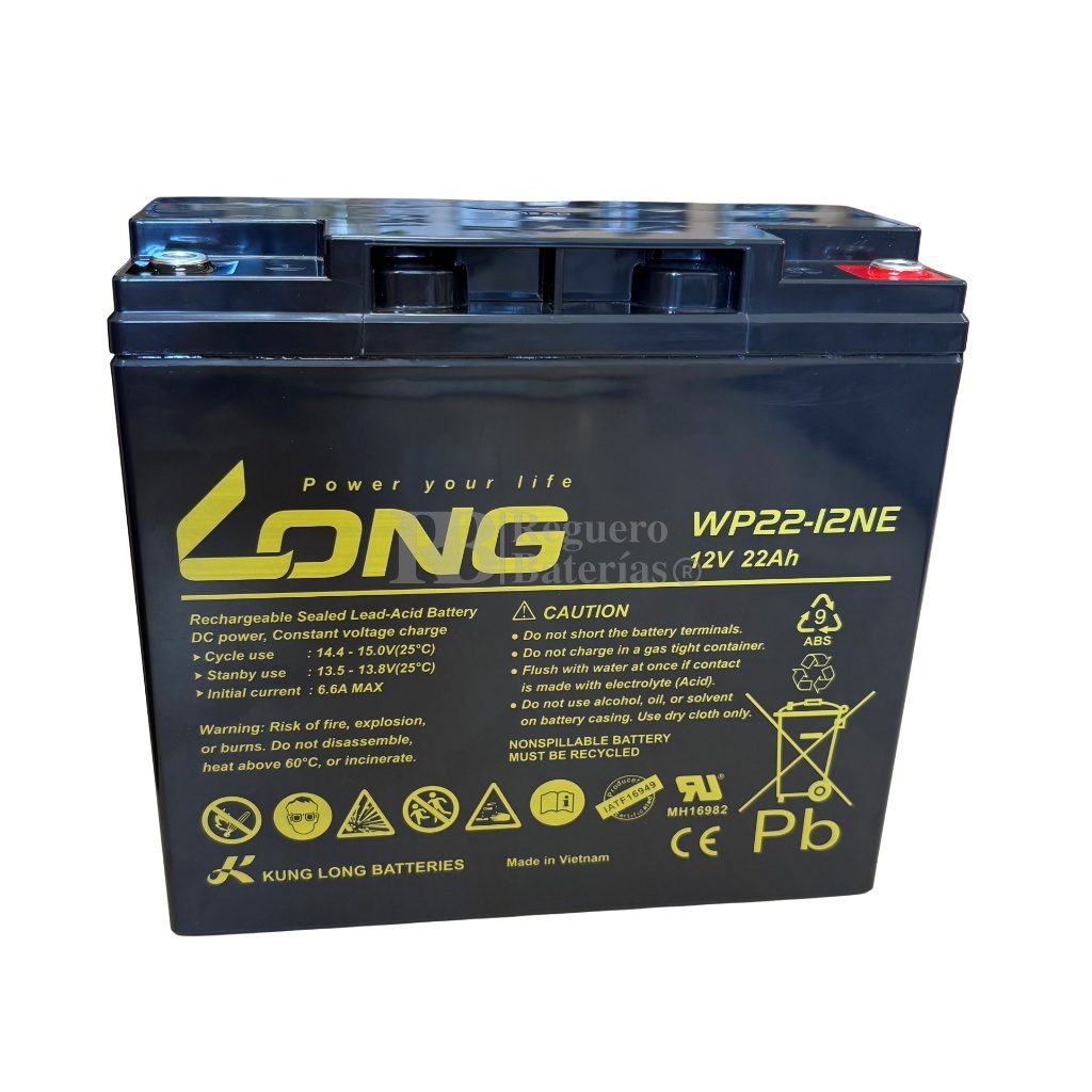 Batería Long WP22-12NE 12 Voltios 22 Amperios Alta Descarga para vehículos de movilidad