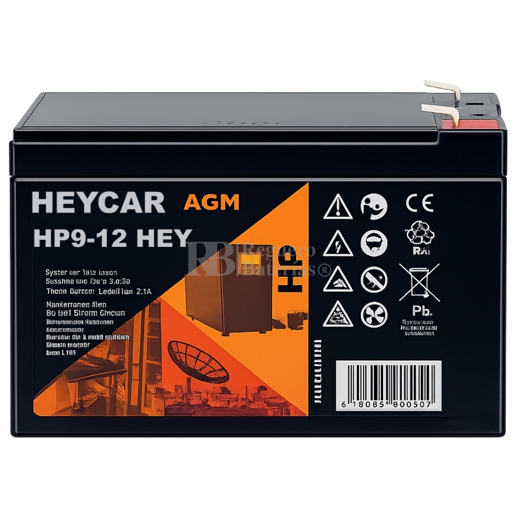 Batería 12 Voltios 9 Amperios Heycar HP12-9