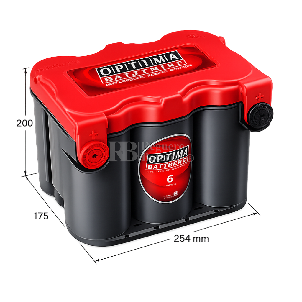 Batería Optima RedTop RTF 4.2 – 12 Voltios, 50 Ah (C20), 815 A de arranque en frío (CCA), con tecnología AGM SPIRALCELL®.