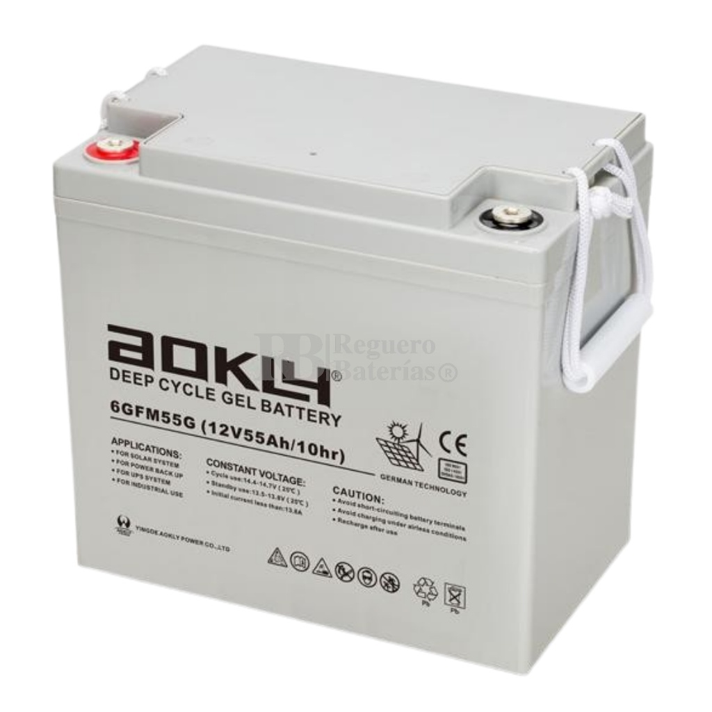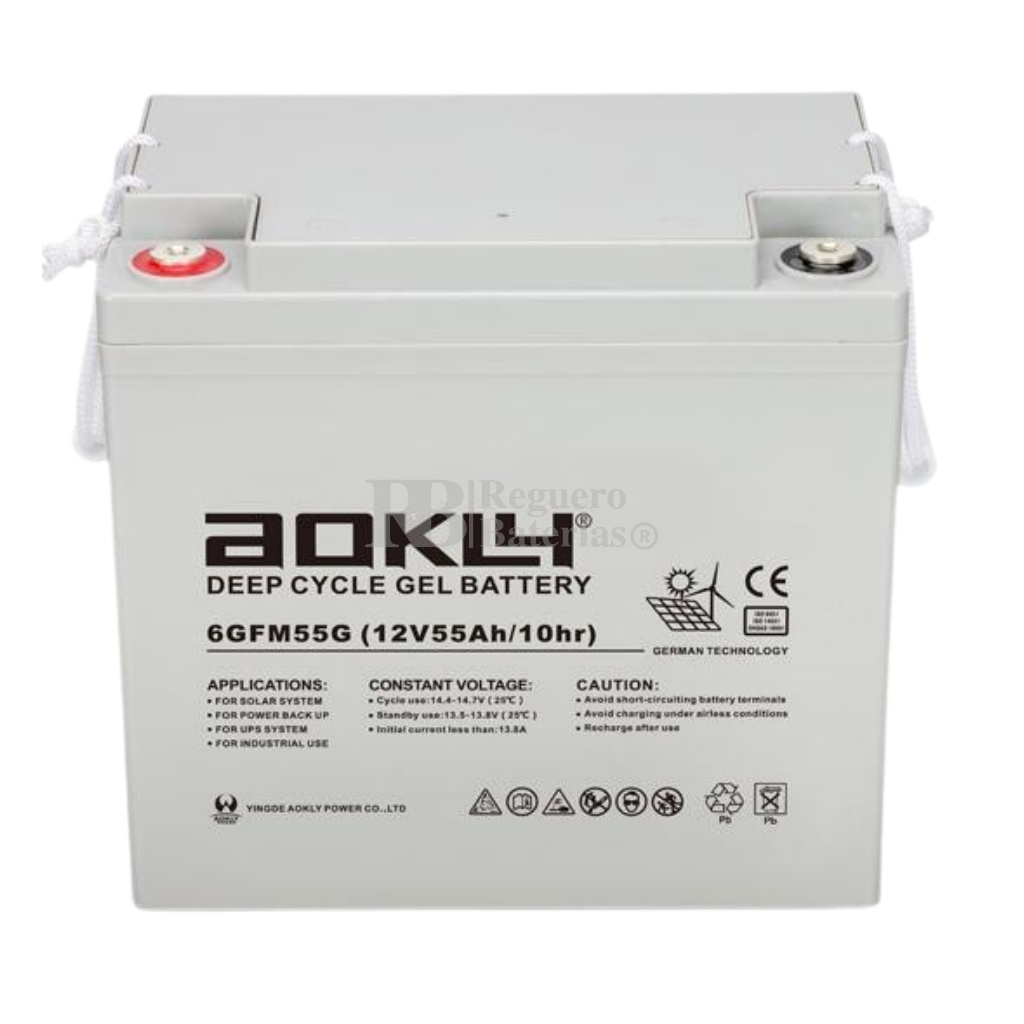 Batería Ciclo Profundo en Gel 12 Voltios 55 Amperios Aokly 6GFM55G