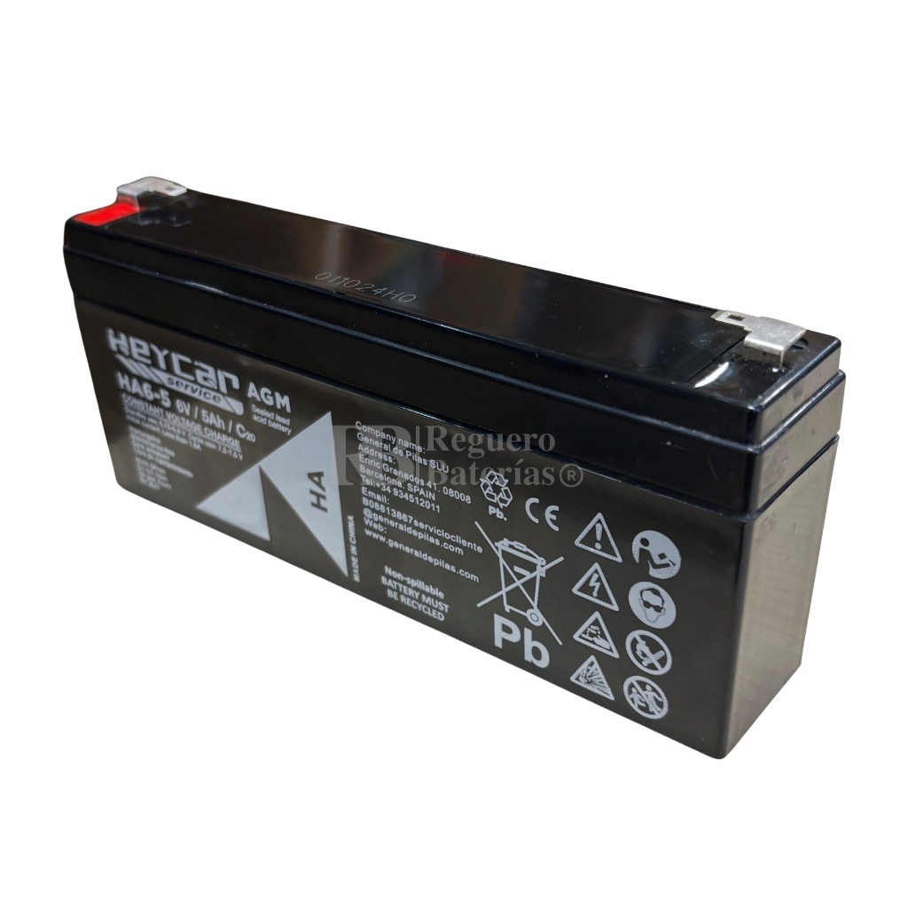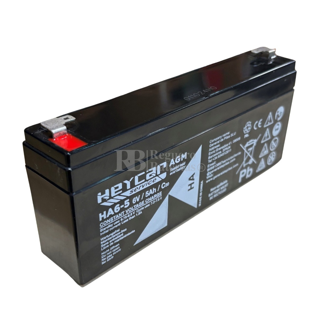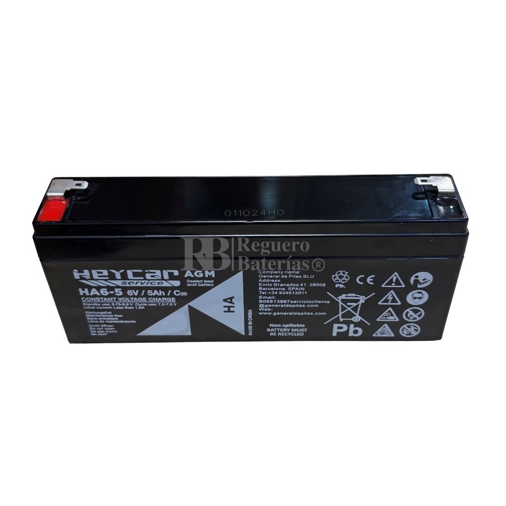 Batería AGM con válvulas de seguridad VRLA de alta descarga Heycar 6 Voltios 5 Amperios. HA6-5 Heycar