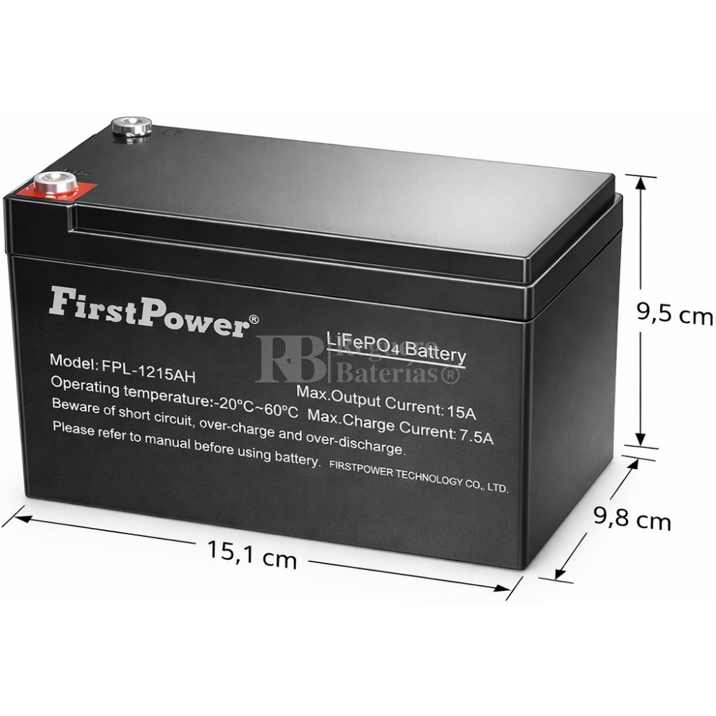 Batería Litio 12 Voltios 15 Amperios FirstPower FPLI12-15ah LiFePO4 para Silla de Movilidad.
