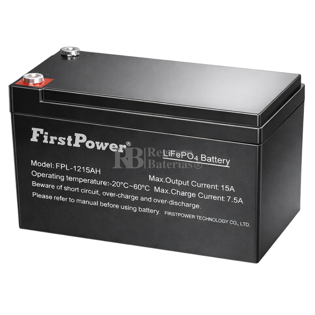 Las baterías FirstPower de Litio Fosfato de Hierro, Litio Ferroso o LiFePO4 FPLI12-15AH tienen muchas ventajas frente a otras tecnologías como el plomo AGM o GEL, son bastante menos pesadas, cargan en menos tiempo, los ciclos de uso son casi 8 veces superior ( esto indica que la batería durara a largo plazo mucho más tiempo ), una batería convencional de plomo dispone de media sobre los 250 ciclos de uso y en litio ferroso tiene entre 2.000 a 3.000 ciclos dependiendo de la profundidad de descarga.