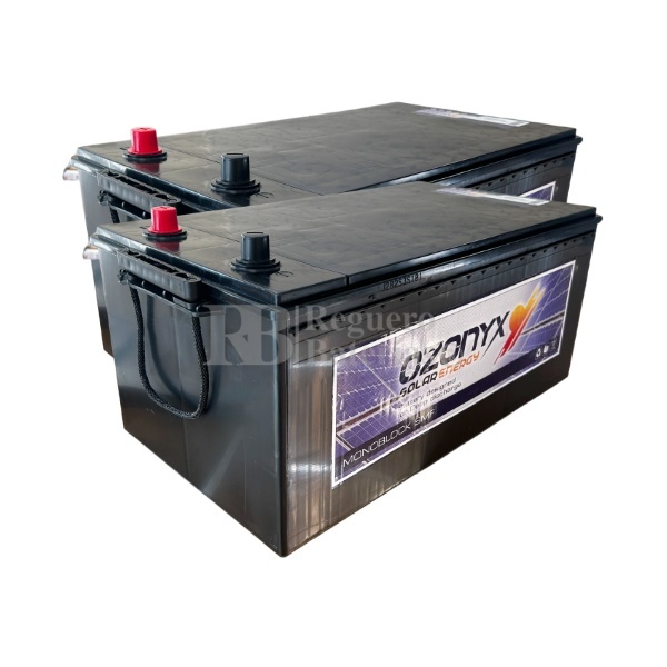 Kit de 2 Baterías sin mantenimiento Ozonyx Monoblock para instalaciones solares en 12 Voltios 250 Amperios