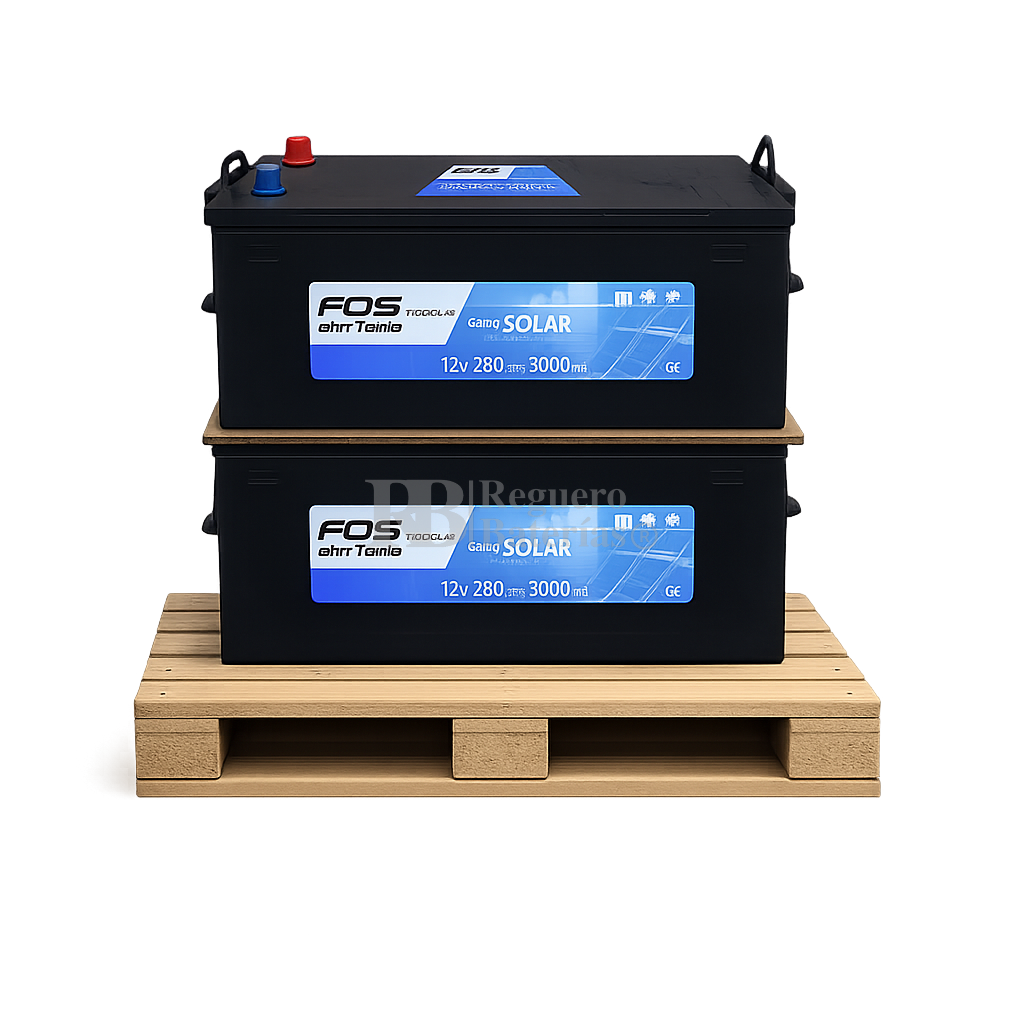 Conjunto de 2 baterias instalación solar FQS12-250 de 12 Voltios 250 Amperios C100 sin mantenimiento para aplicaciones solares