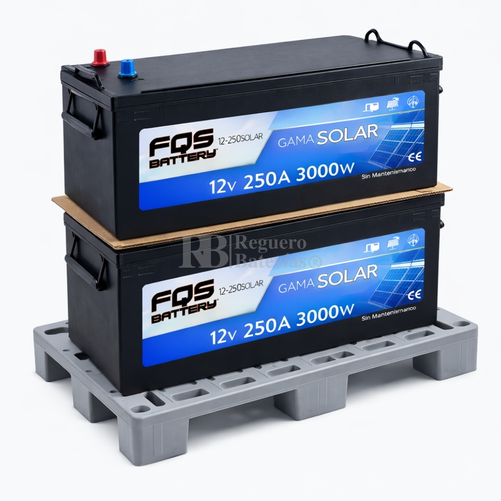 Conjunto de 2 baterias instalación solar FQS12-250 de 12 Voltios 250 Amperios C100 sin mantenimiento para aplicaciones solares