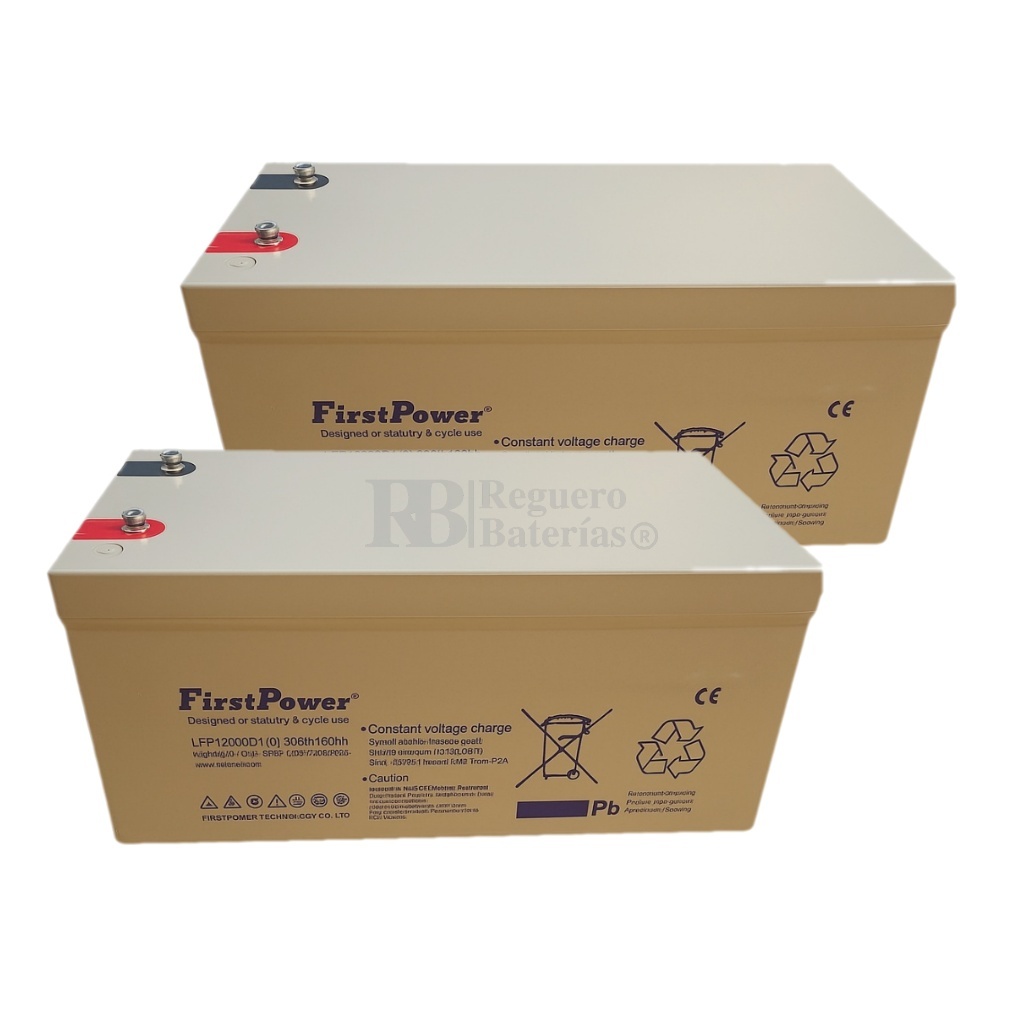 2 Baterías de Gel 12 Voltios 300 Amperios LFP12300D First Power
