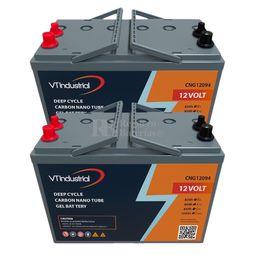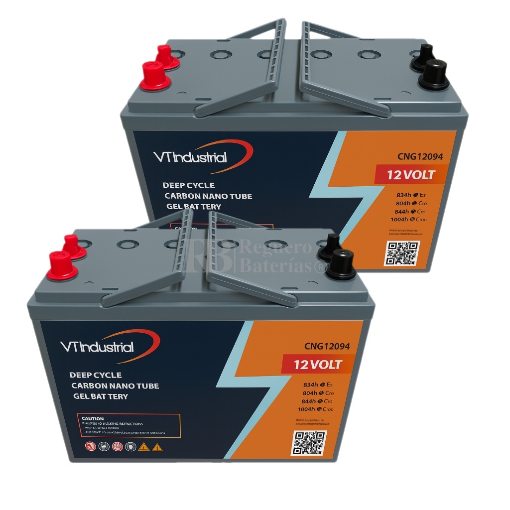 Batería CNG12094 12 Voltios 94Ah (C20) – Carbon Nano Gel Deep Cycle La batería CNG12094 forma parte de la gama profesional de baterías de ciclo profundo con tecnología Carbon Nano Gel, especialmente diseñada para aplicaciones que demandan alta durabilidad, bajo mantenimiento y un excelente rendimiento energético. Su diseño sellado y libre de mantenimiento la hace ideal para sistemas solares, vehículos eléctricos, plataformas de trabajo, telecomunicaciones y aplicaciones marinas o recreativas.