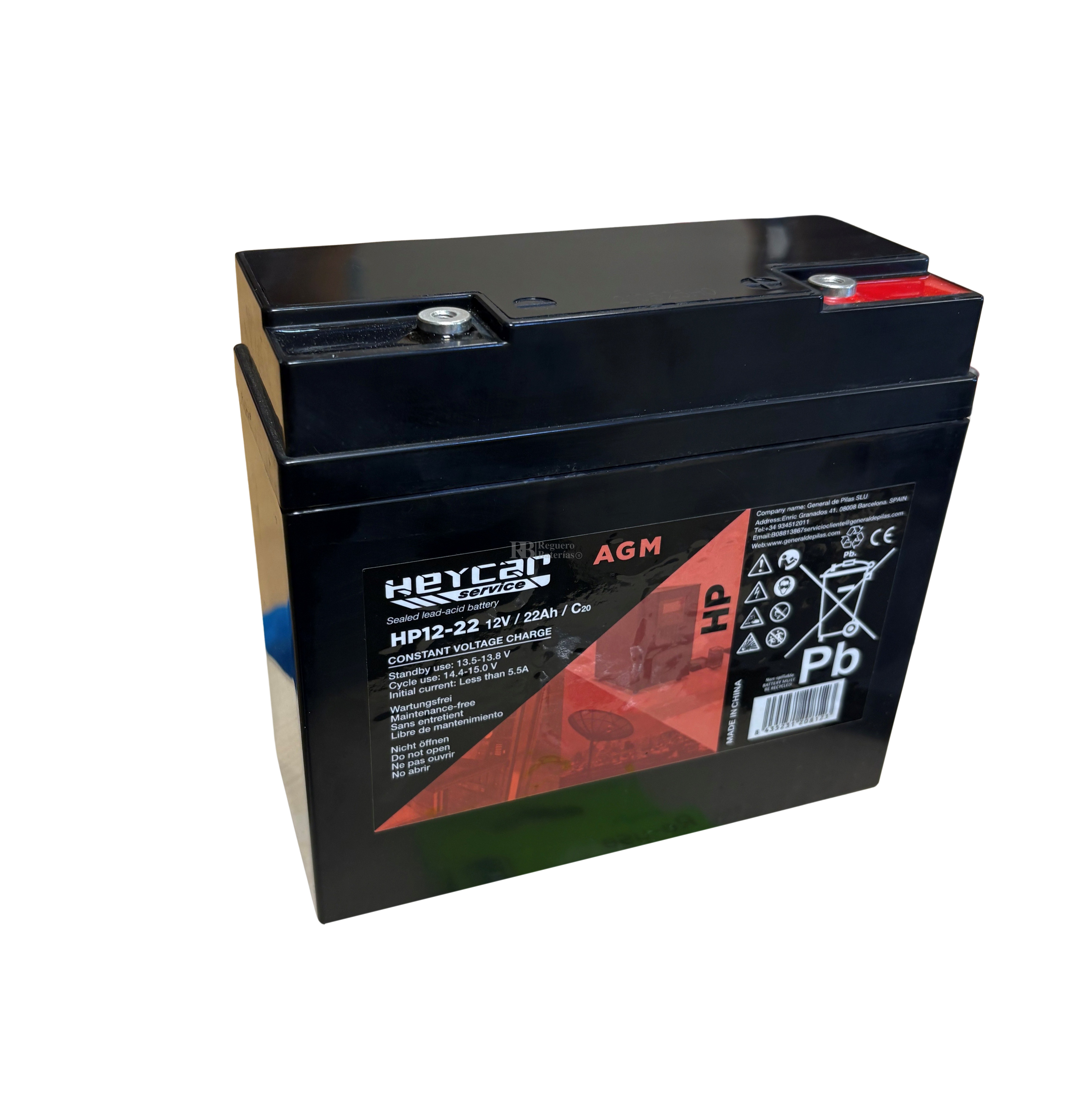 Batería Heycar HP12-22,  12 V 22 Ah Alta Potencia AGM
