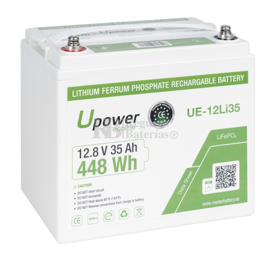 Batería UPower UE-12Li35, 12,8 Voltios 35 Amperios LiFePO4 (Serie UE)