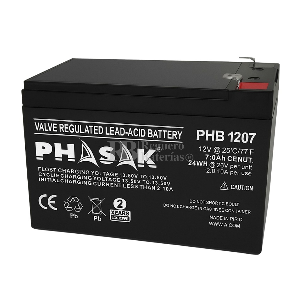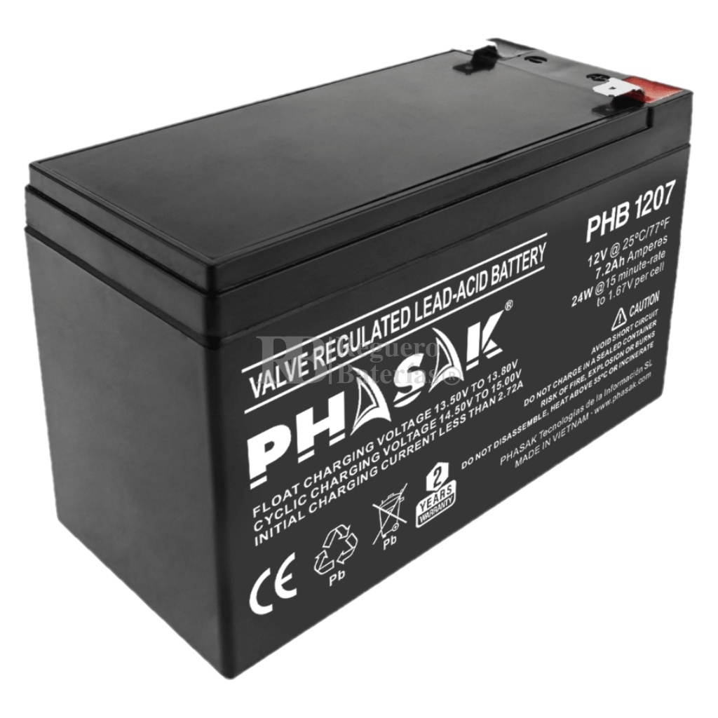 Batería Phasak PHB-1207, 12 V 7,2 Ah AGM (VRLA) – Potencia y Fiabilidad para Sistemas SAI / UPS
