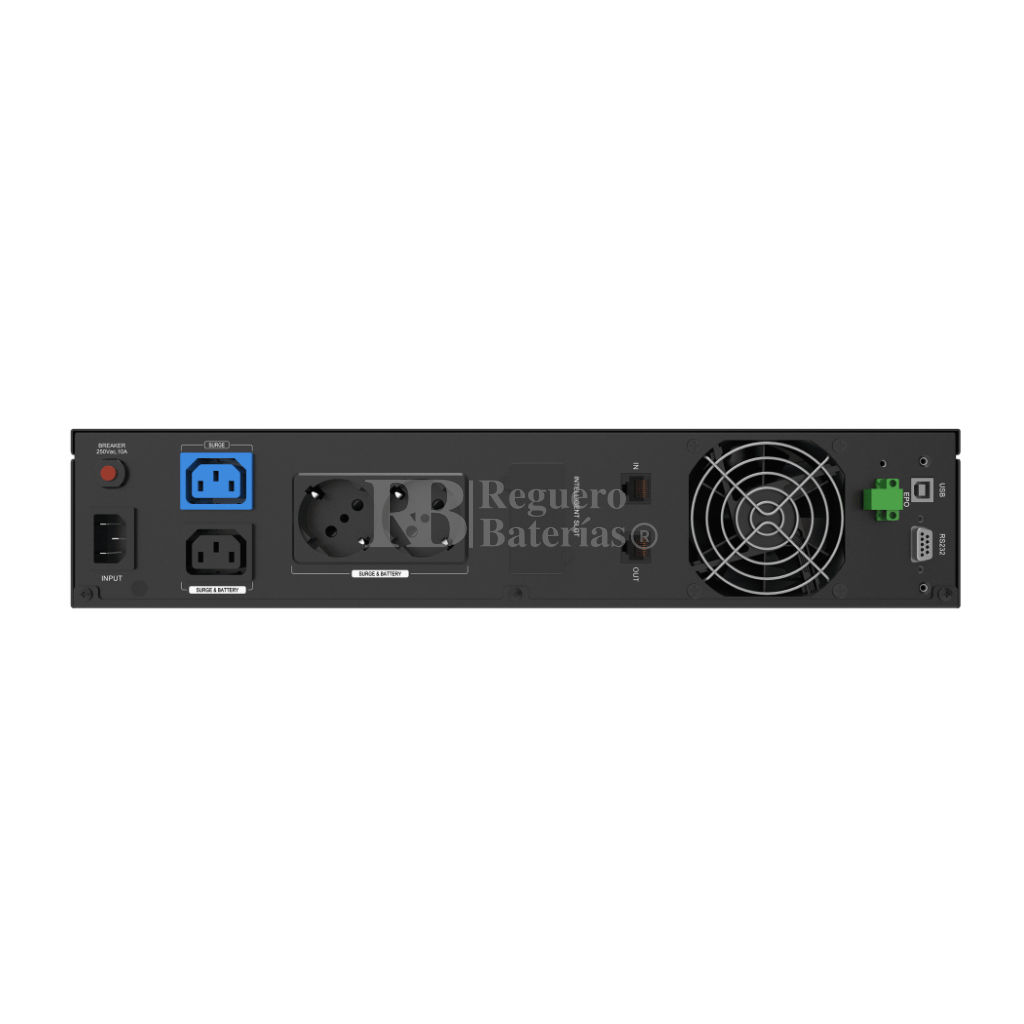 - Salidas: 2 × Schuko, 2 × IEC, 2 × RJ45 (Surge Protect)