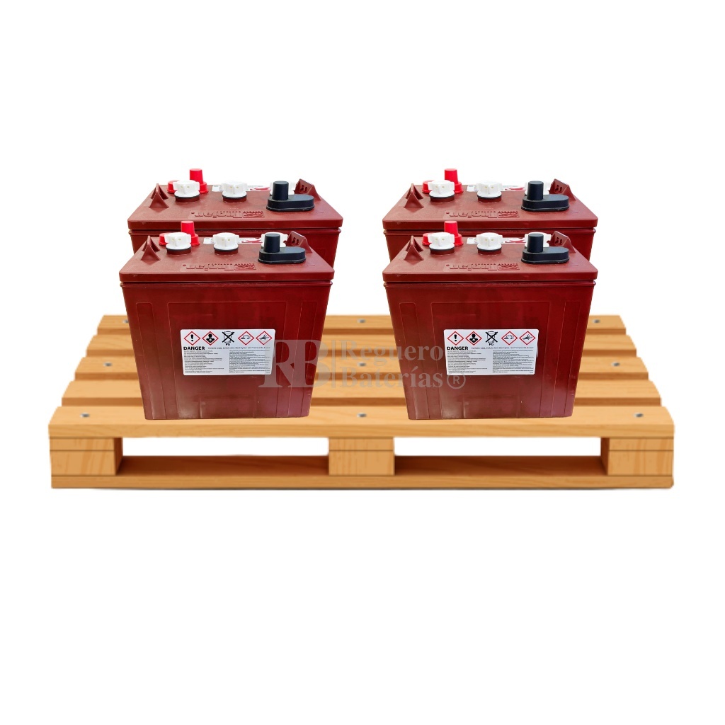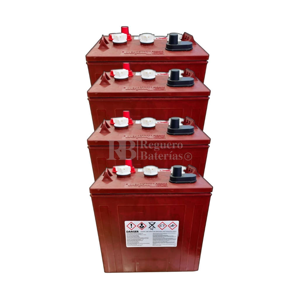 Kit de 4 Baterías Trojan T-105 de 6 voltios 250 amperios para formar 2 grupos de 12 voltios 500 amperios en configuración serie + paralelo o 1 grupo de 24 voltios 250 amperios en configuración serie 4 baterías