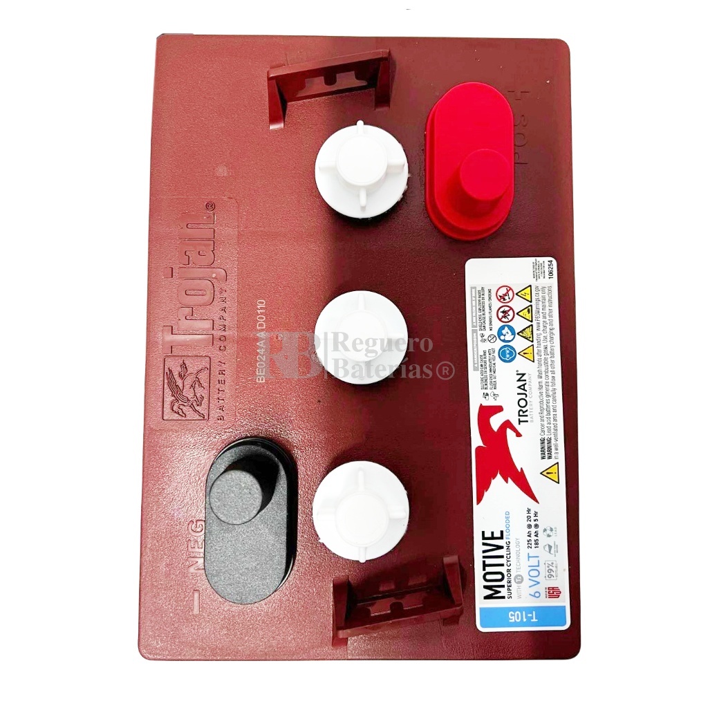La batería Trojan T-105 es una batería de plomo-ácido inundada, diseñada principalmente para aplicaciones de ciclo profundo, como en sistemas de energía solar, carritos de golf, maquinaria industrial como plataformas elevadoras o vehículos de limpieza y otros equipos que requieren una descarga constante y prolongada.