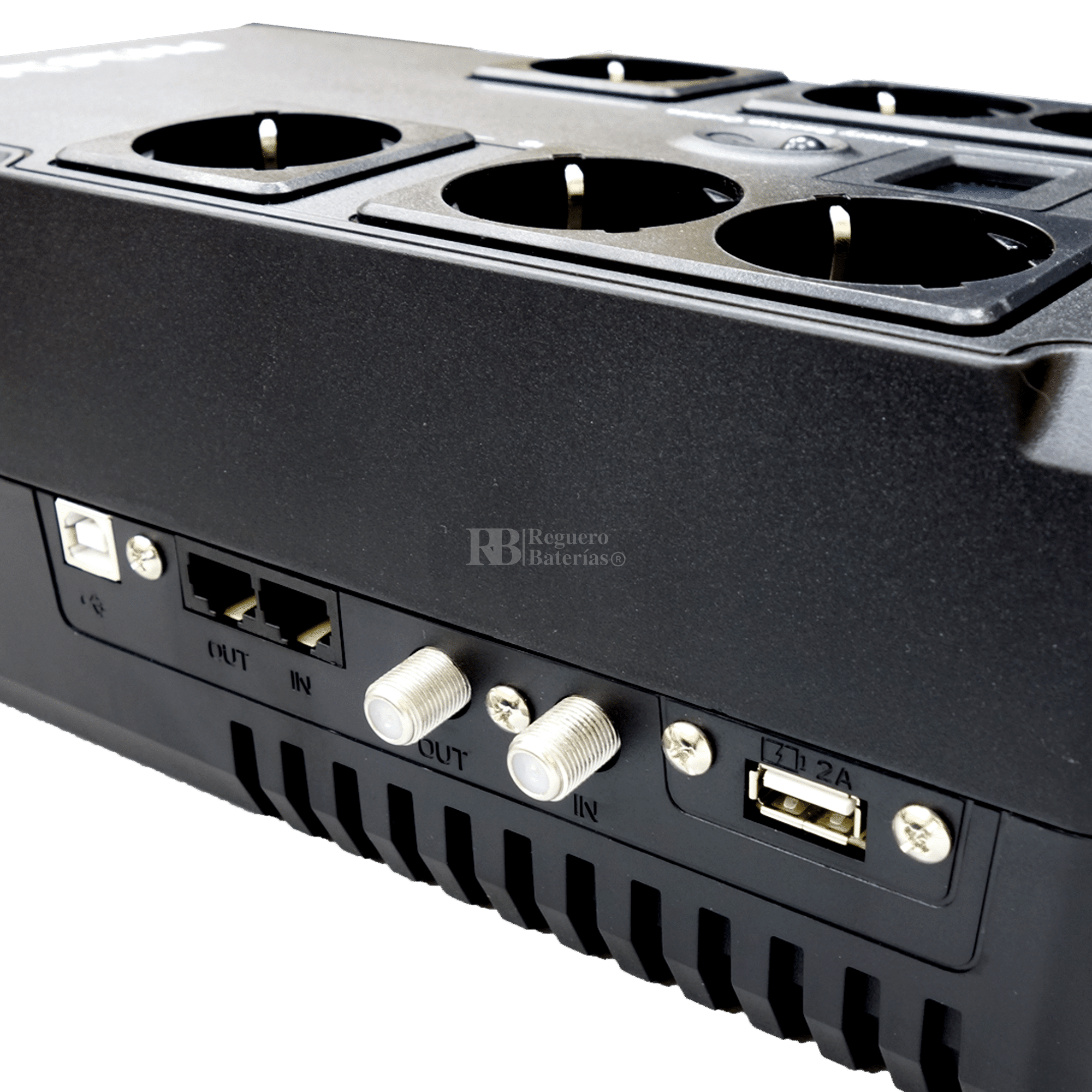 • Salidas AC: 6 × Schuko (3 con respaldo + 3 protección)