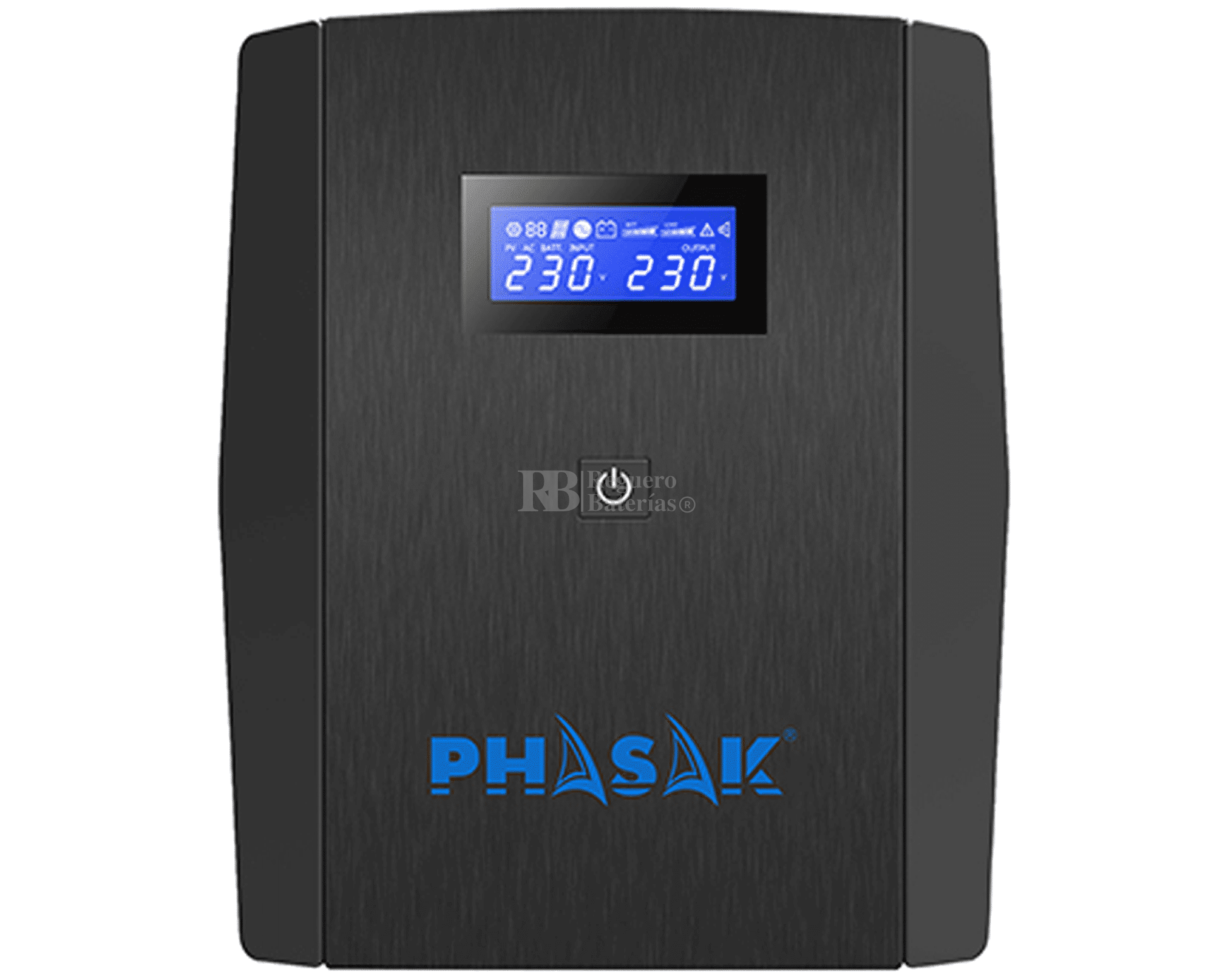 • Pantalla LCD informativa: muestra en tiempo real el estado del SAI (carga, nivel de batería, tensión de entrada y salida), facilitando la supervisión y el diagnóstico.