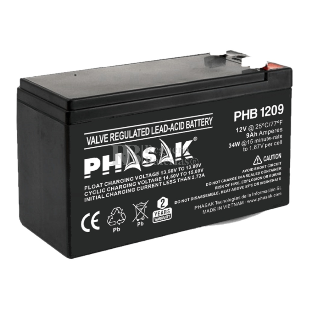 Batería SAI UPS Phasak PHB1209 12 Voltios 9 Amperios