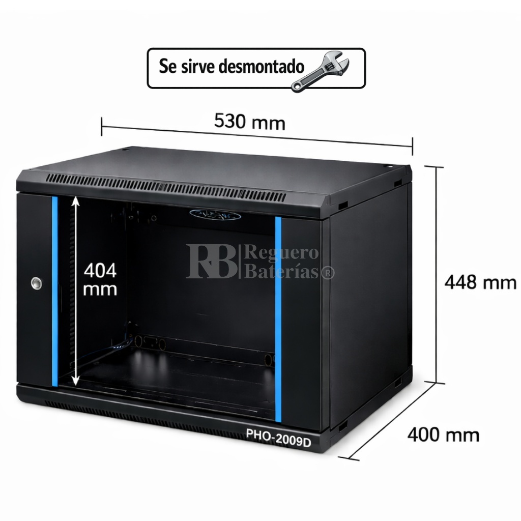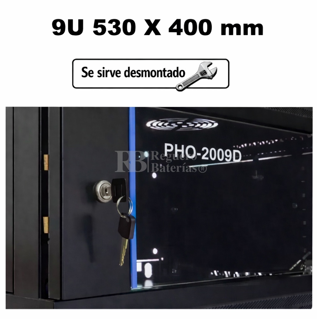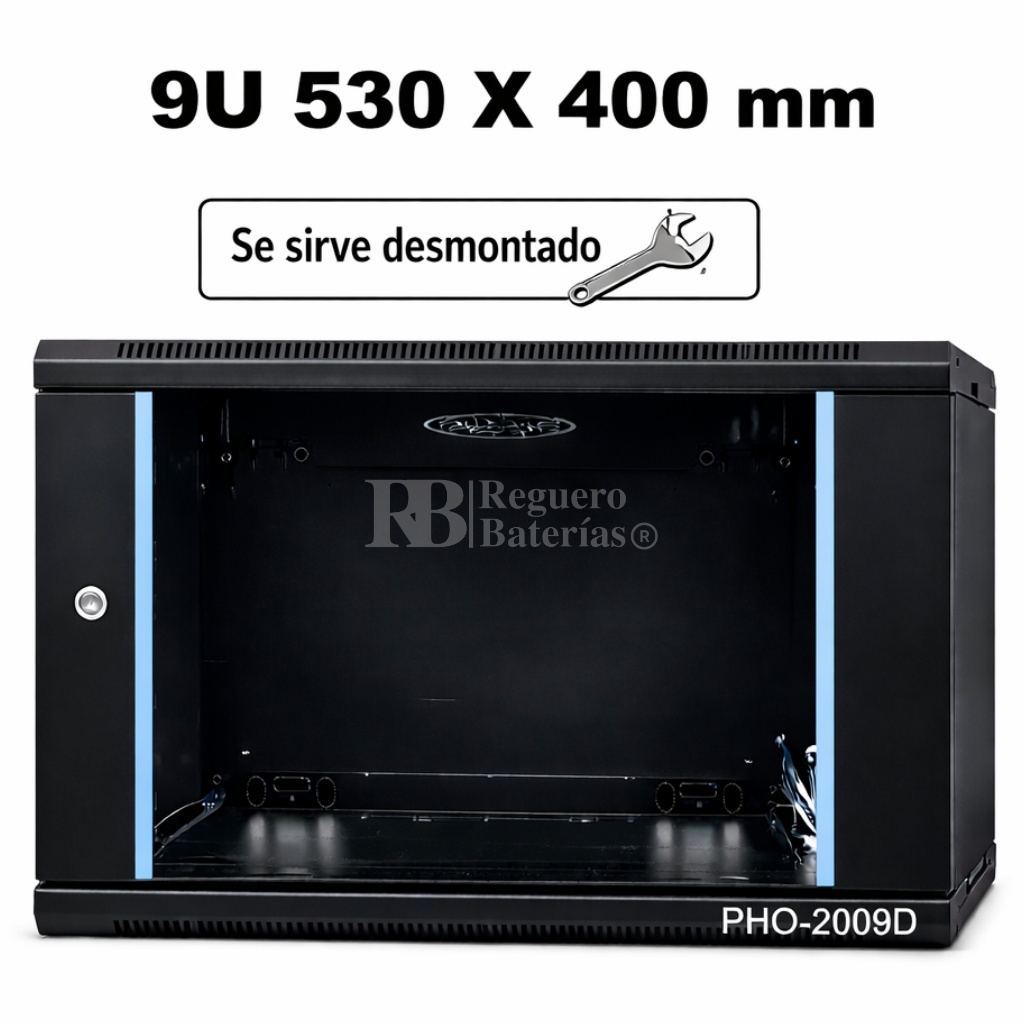 Armario desmontado Phasak ECO 2009-D 9U de altura, 530mm de ancho x 400 mm de fondo.