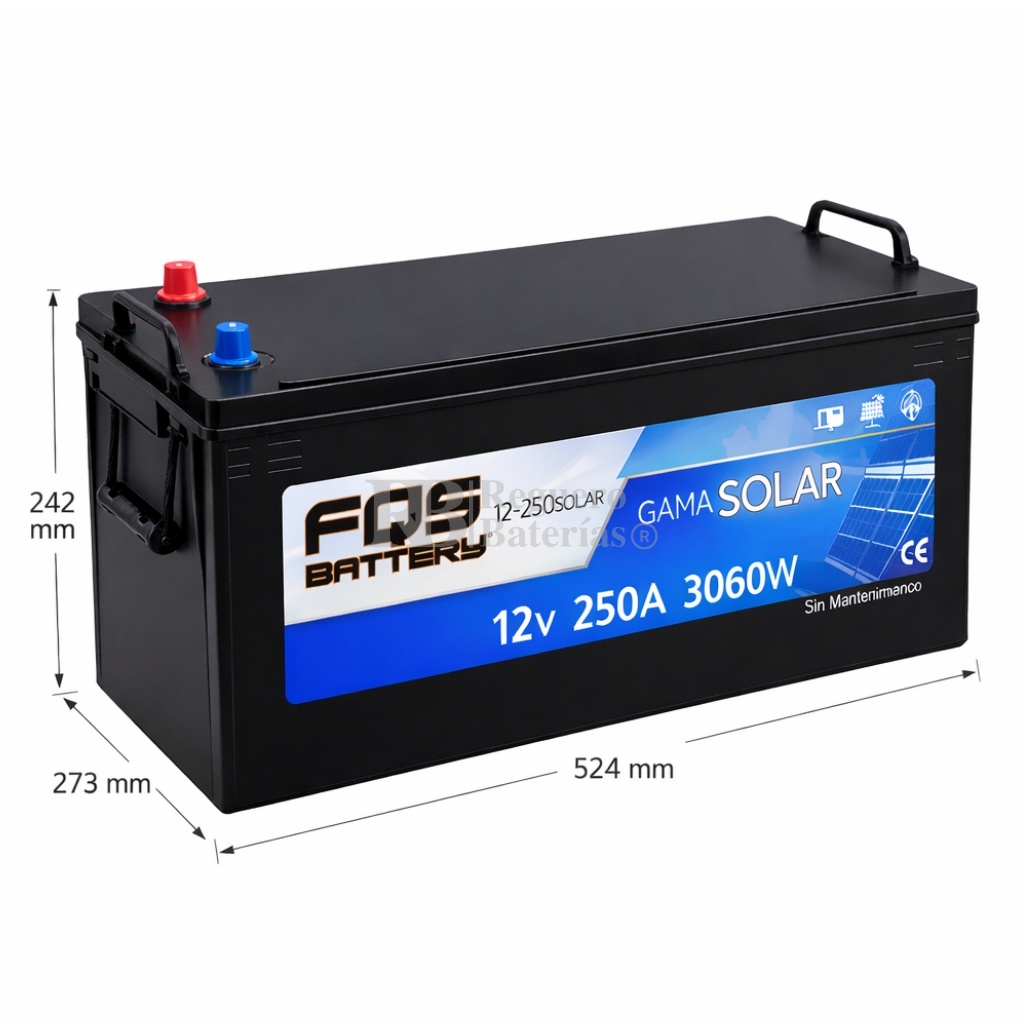 Batería Solar 12V 250Ah FQS250S-12 Sin Mantenimiento para Energía Solar