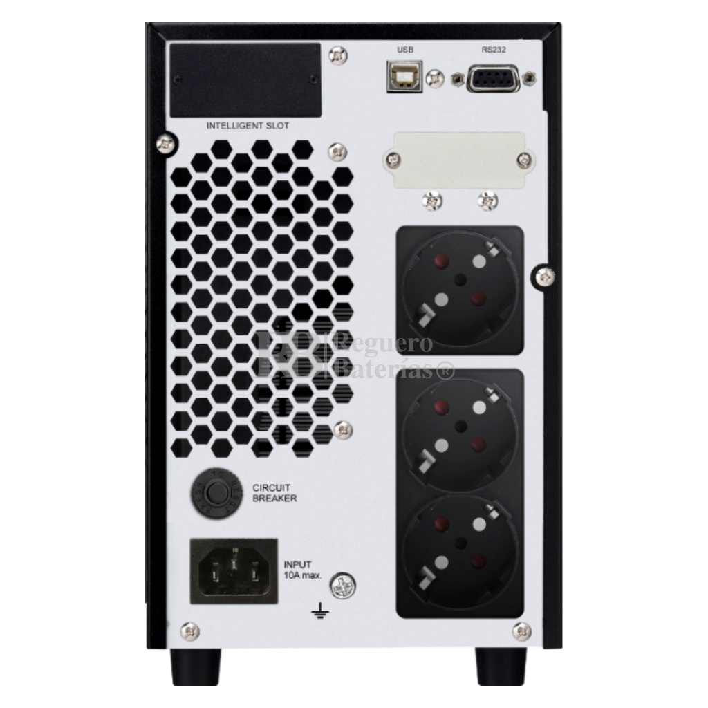 • Interfaces de comunicación: USB, RS-232 y ranura SNMP opcional para monitoreo y gestión remota.