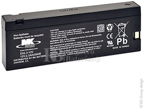 Batería compatible para Philips HeartStart XLT, AGM 12 Voltios 2,3 Amperios MK Powered ES2.3-12V