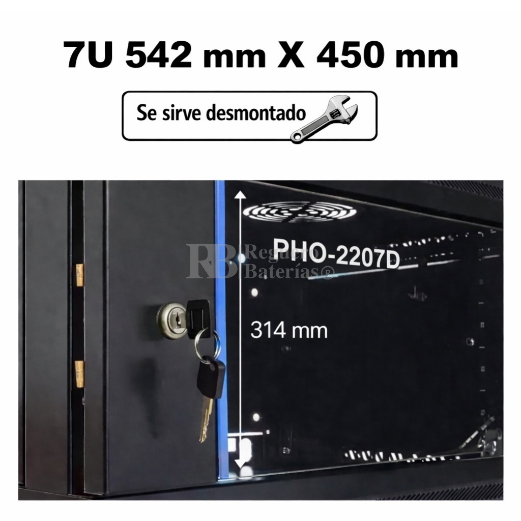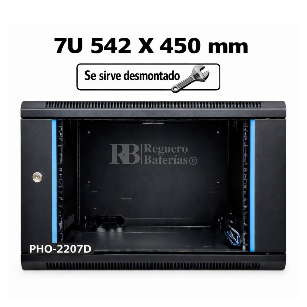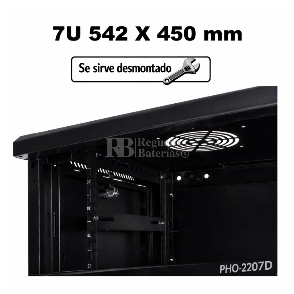 Armario desmontado Phasak ECO 2207-D 7U de altura, 542mm de ancho x 450 mm de fondo.