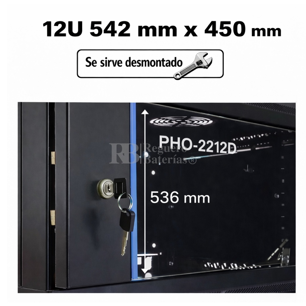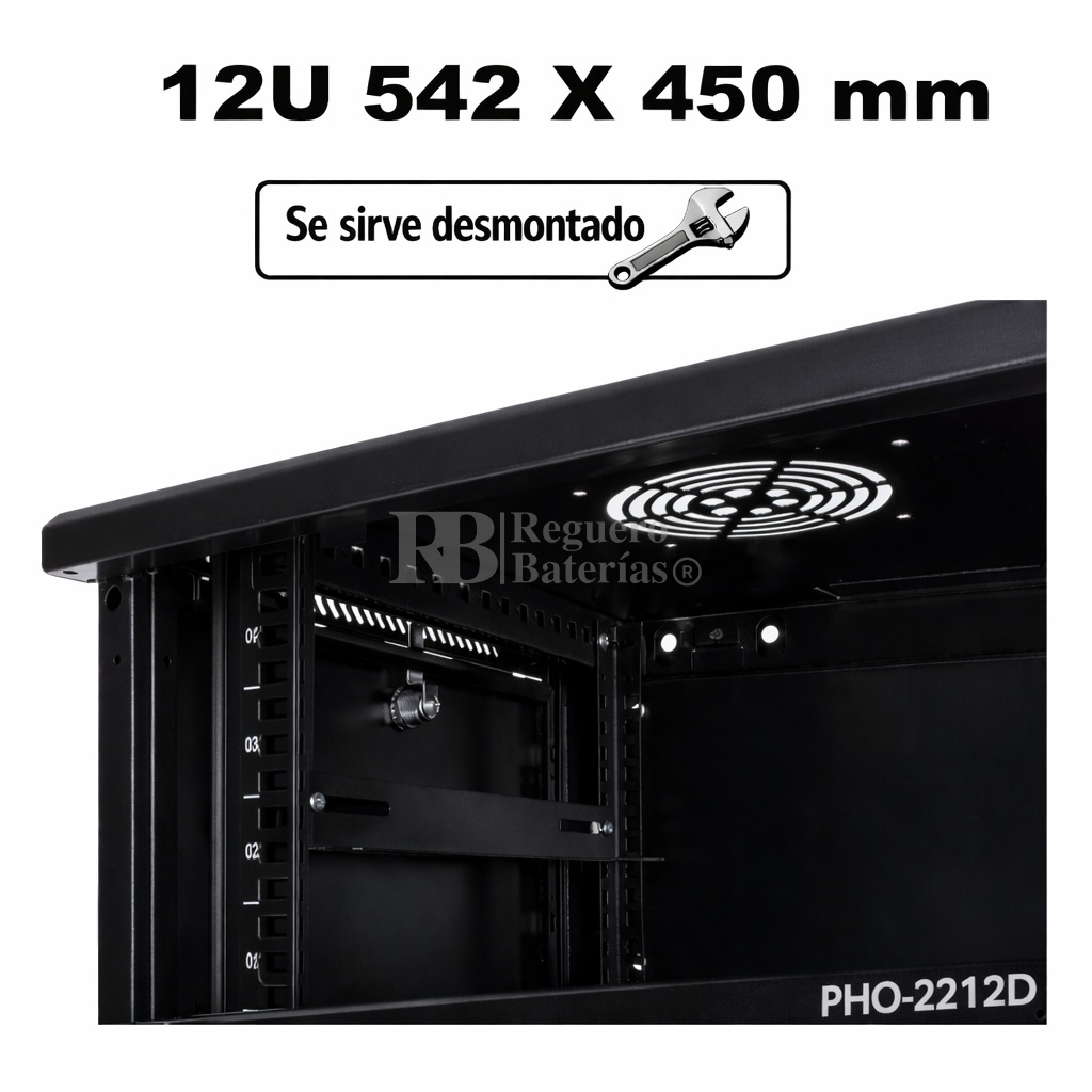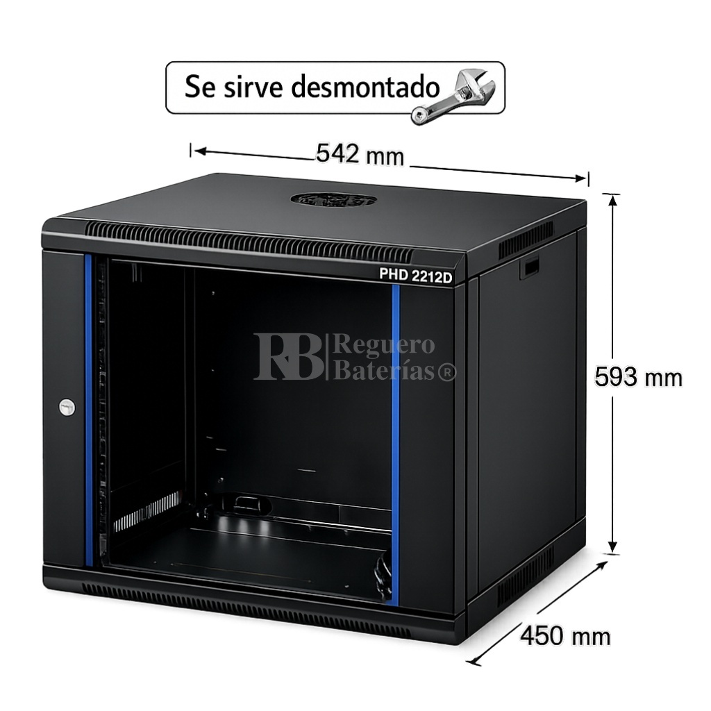 Armario desmontado Phasak ECO 2212-D 9U de altura, 542mm de ancho x 450 mm de fondo.