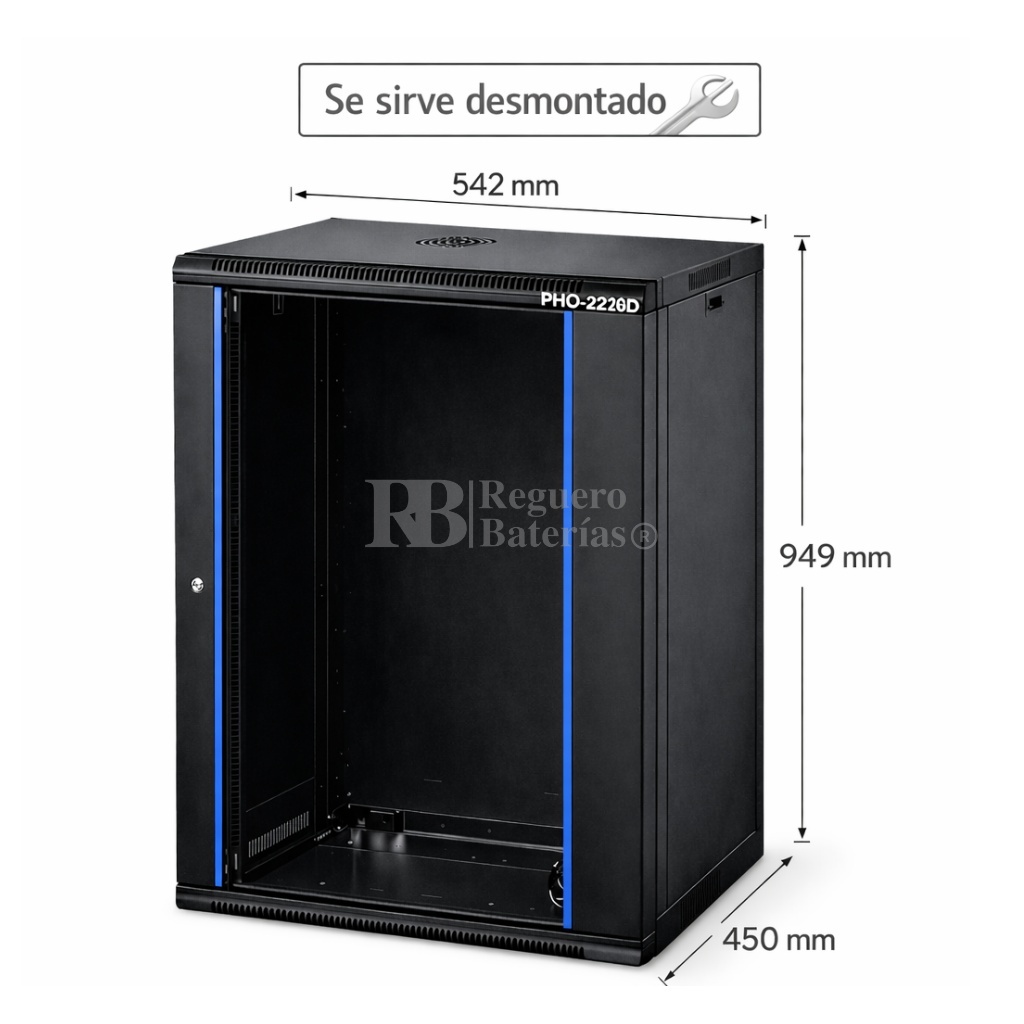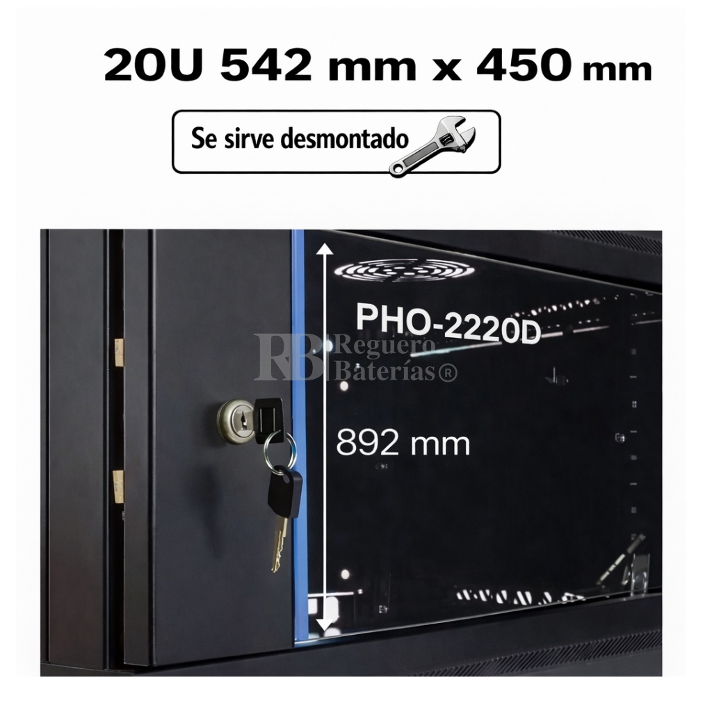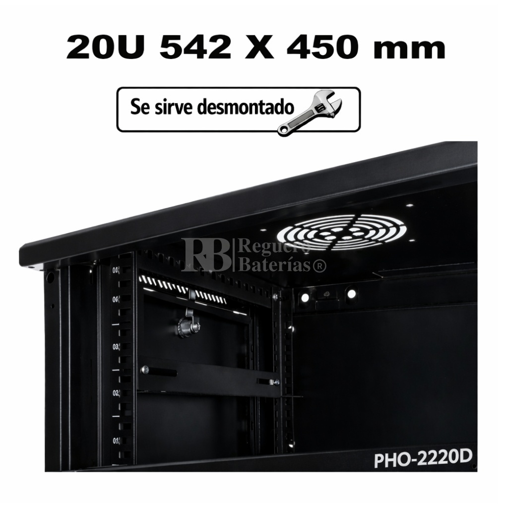 Armario desmontado Phasak ECO 2220-D 20U de altura, 542mm de ancho x 450 mm de fondo.