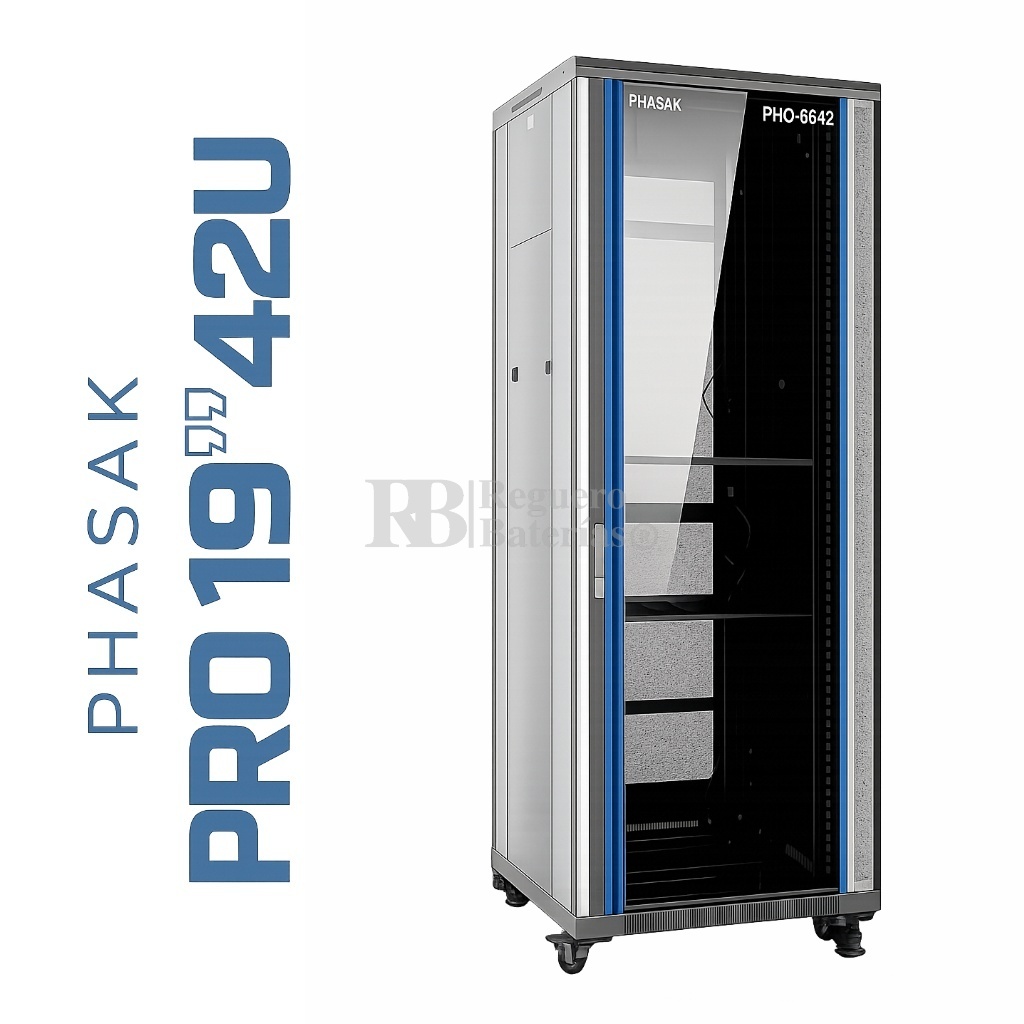 Armario Rack 19″ PHASAK Pro 42U de altura, Anco 600 x Fondo 600 mm.