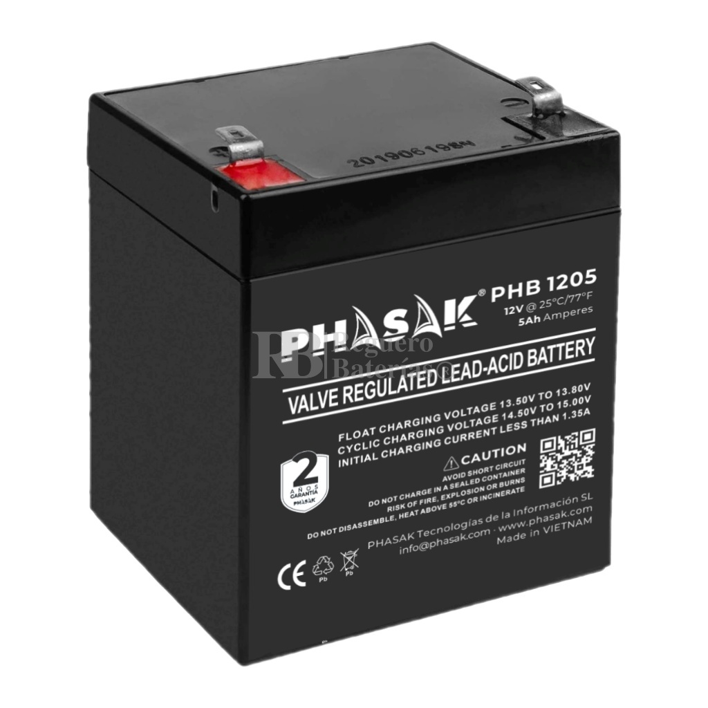 La PHB 1205 es una batería de plomo-ácido sellada (VRLA) con tecnología AGM o equivalente inmovilizada, diseñada para proporcionar respaldo energético seguro y estable en equipos críticos. Con una capacidad de 12 V / 5 Ah, resulta ideal para sistemas de seguridad, telecomunicaciones, UPS/SAI, iluminación de emergencia y otras aplicaciones ligeras donde se requiere una batería compacta y de mantenimiento mínimo. :contentReference[oaicite:1]{index=1}