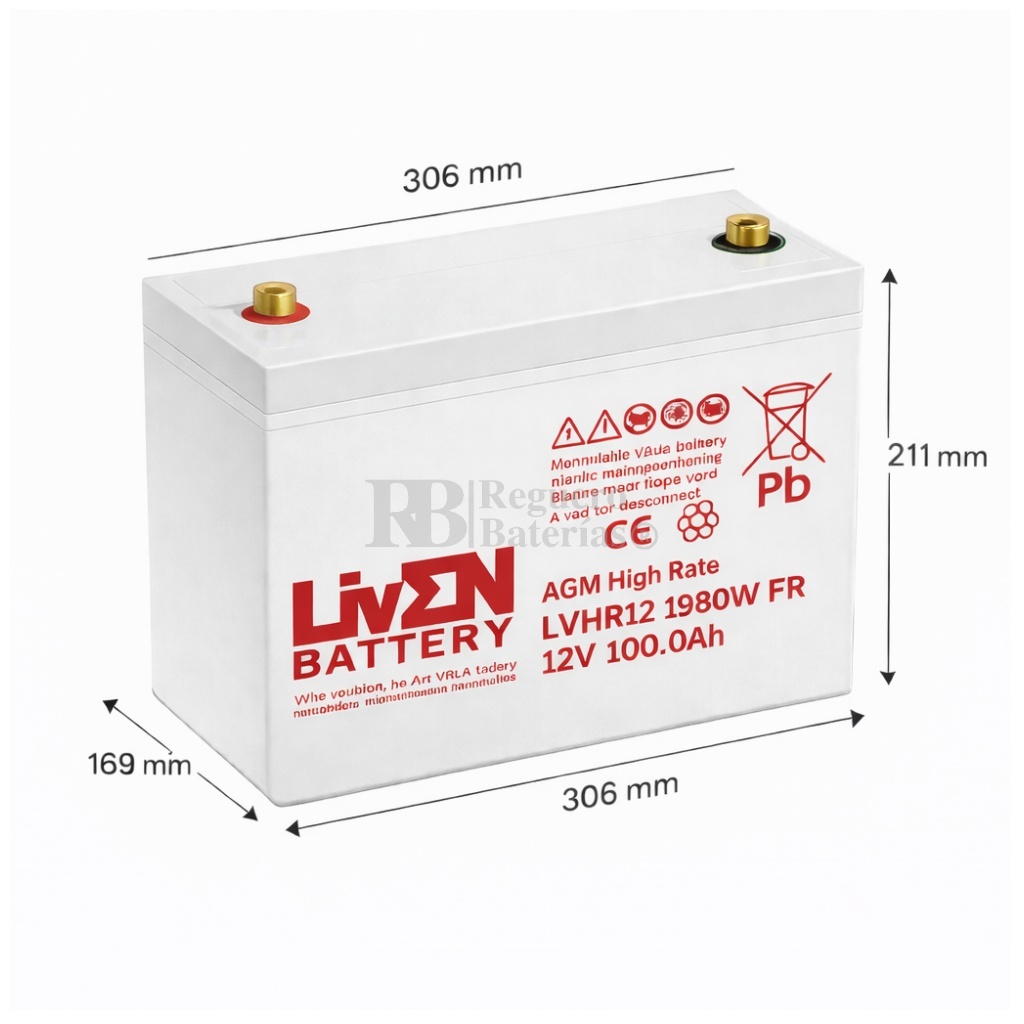 Batería Liven Battery LVHR12-1980, 100 Amperios 12 Voltios 10/12 Años EUROBAT