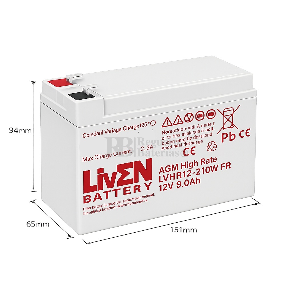 Batería Liven Battery LVHR12-210 12 Voltios 9 Amperios Larga Vida 10 - 12 Años EUROBAT