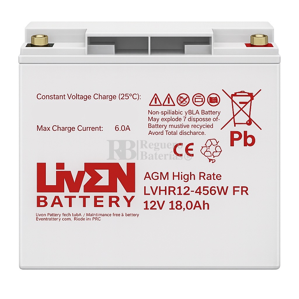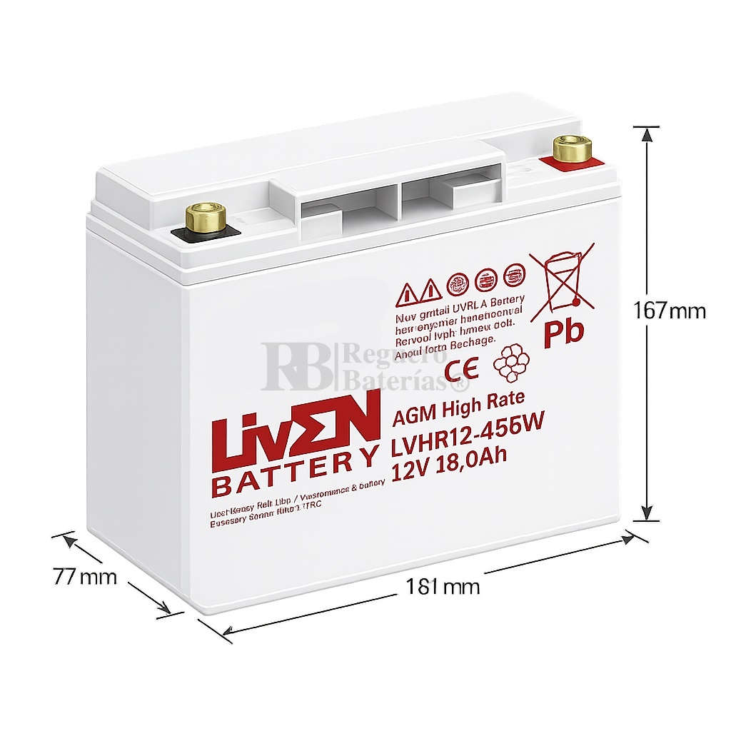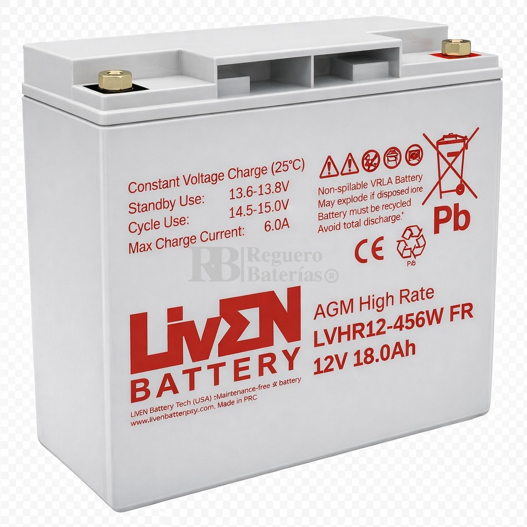 Batería LVHR12-456W VRLA AGM de Alto Rendimiento, 12 Voltios 18 Amperios – Serie LVHR para Aplicaciones de Alta Descarga