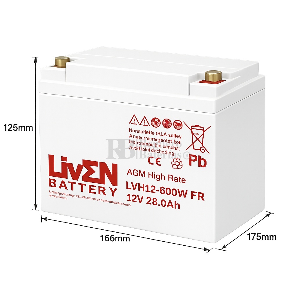 Batería LVHR12-600W VRLA AGM de Alto Rendimiento, 12 Voltios 28 Amperios – Serie LVHR para Aplicaciones de Alta Descarga