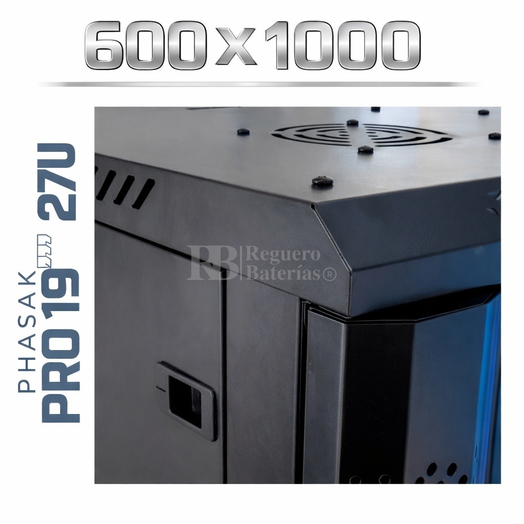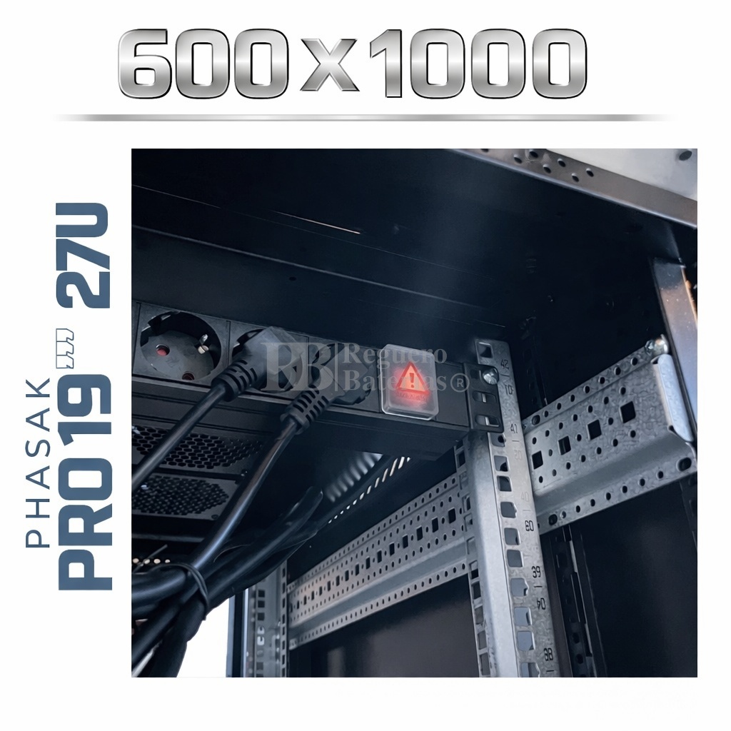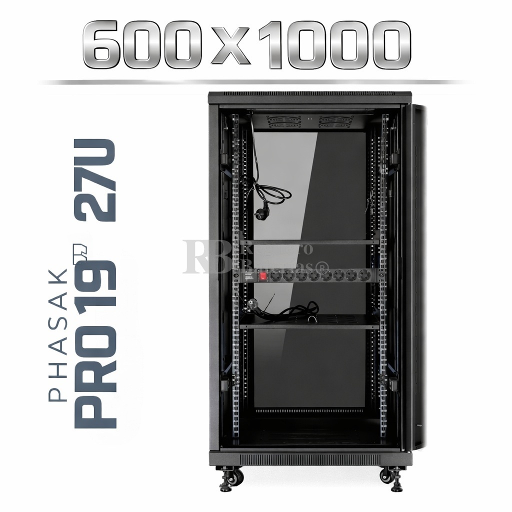 Armario Rack 19″ PHASAK Pro 27U de altura, Ancho 600 x Fondo 1000 mm.