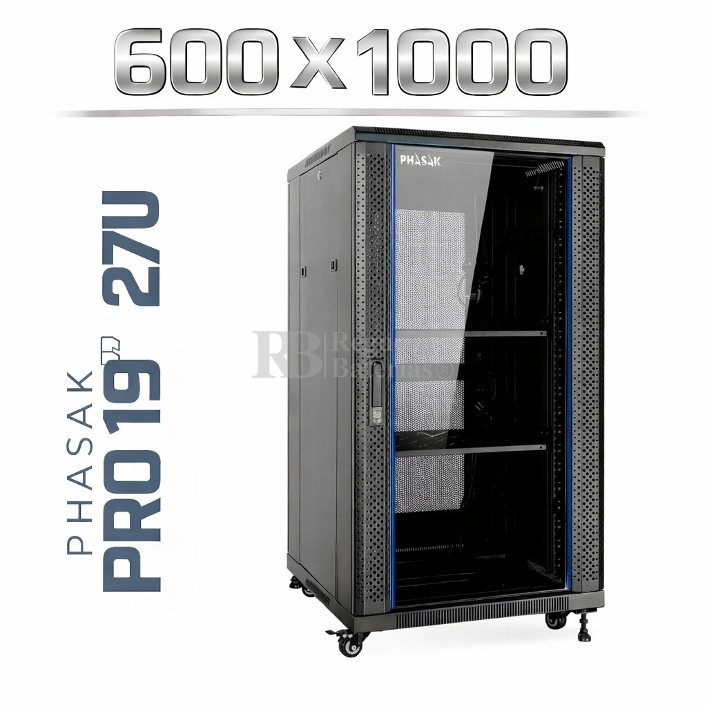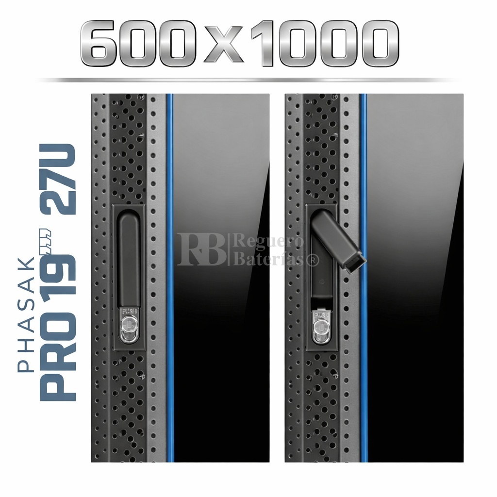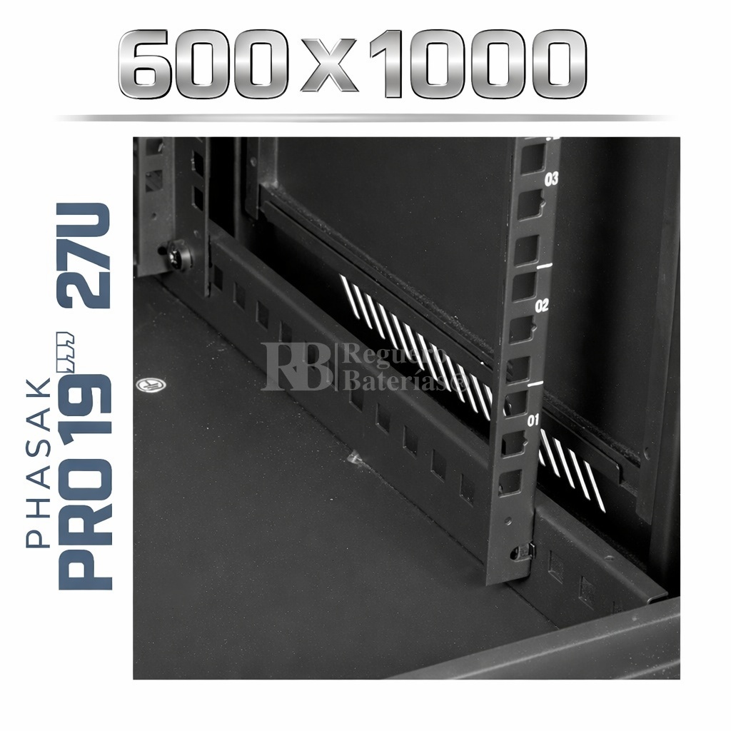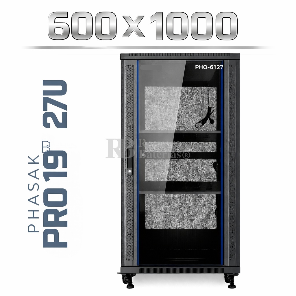 Armario Rack 19″ PHASAK Pro 27U de altura, Ancho 600 x Fondo 1000 mm.
