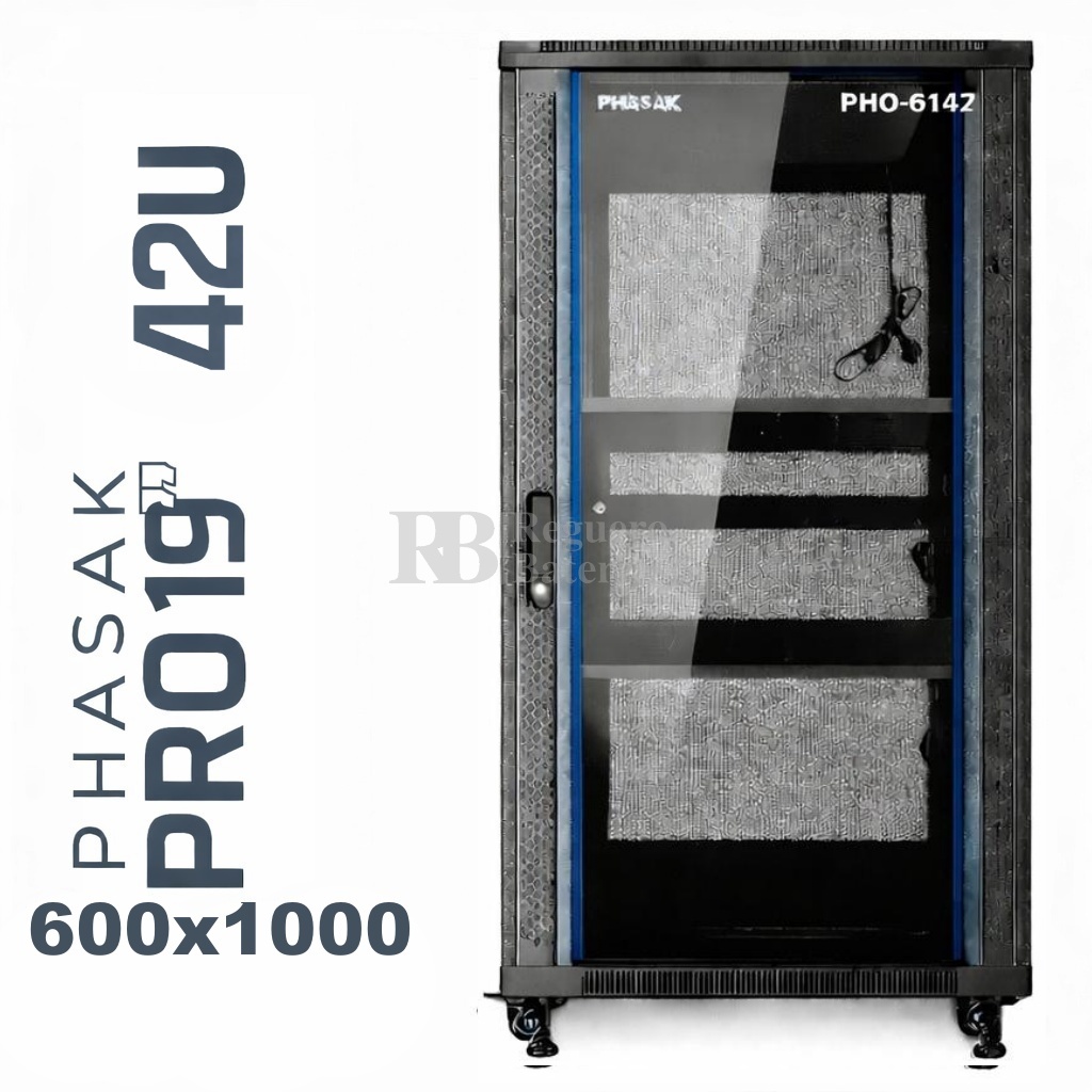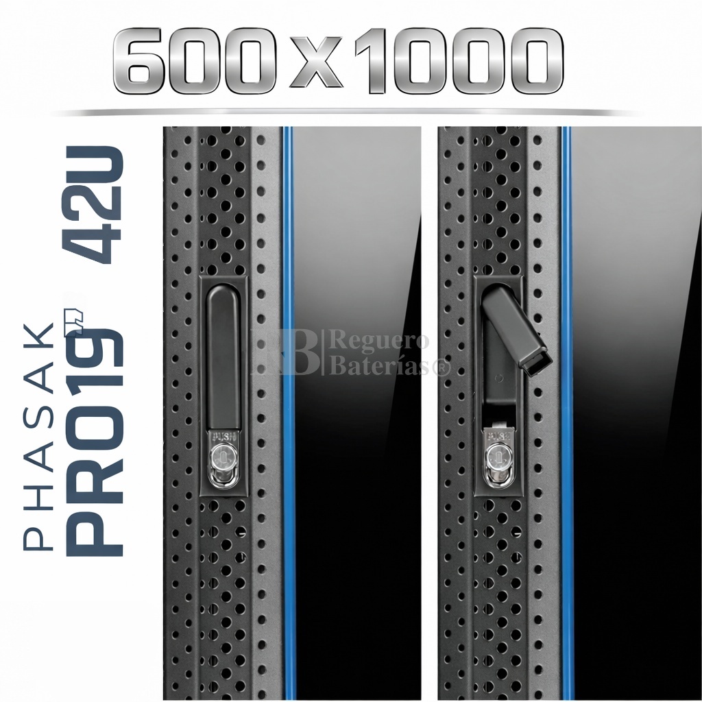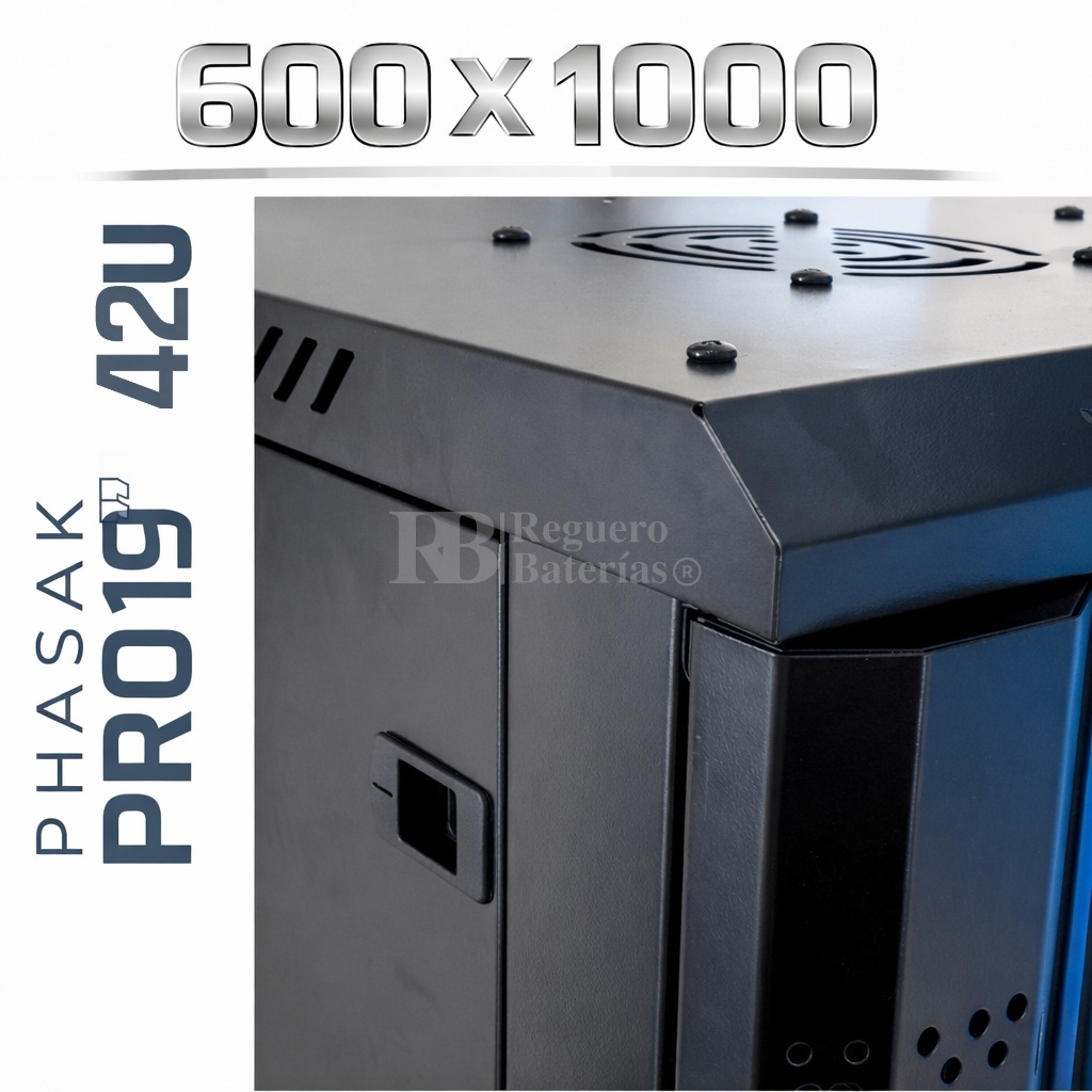 Armario Rack 19″ PHASAK Pro 42U de altura, Ancho 600 x Fondo 1000 mm.