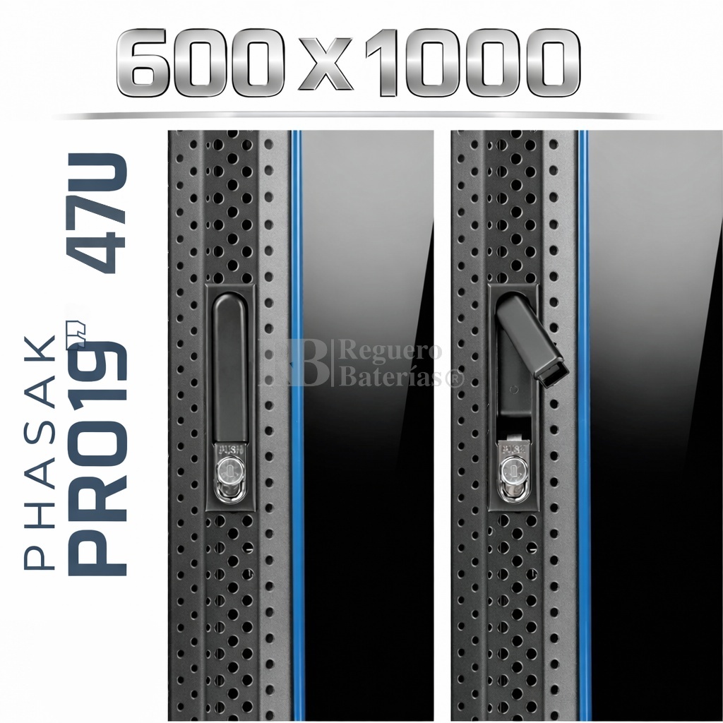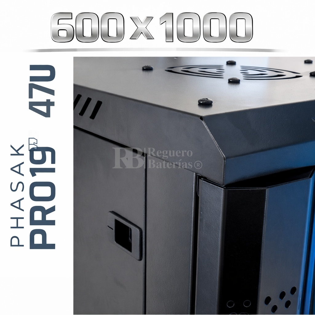 Armario Rack 19″ PHASAK Pro 42U de altura, Ancho 600 x Fondo 1000 mm.