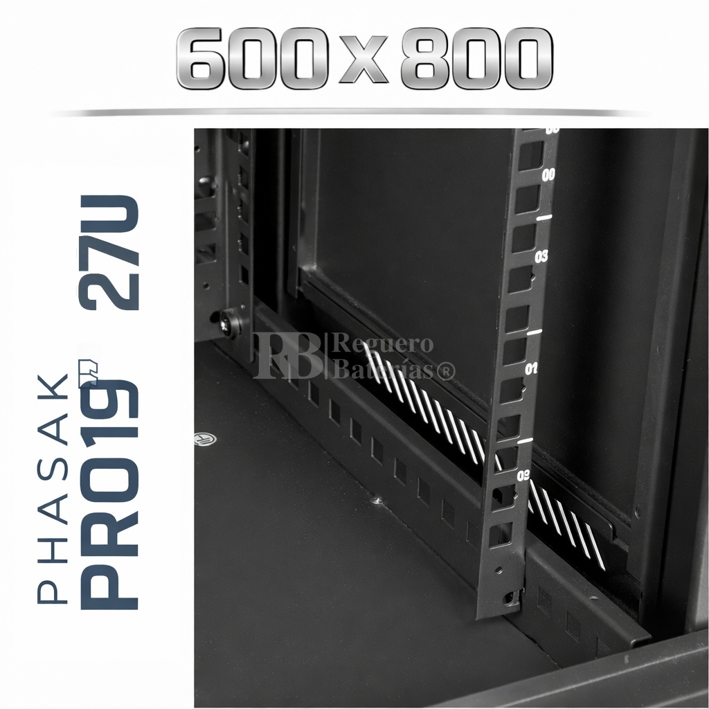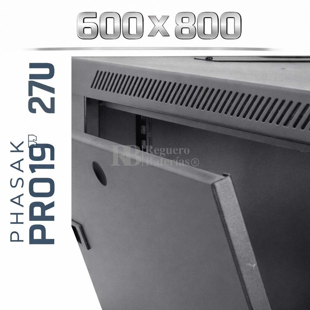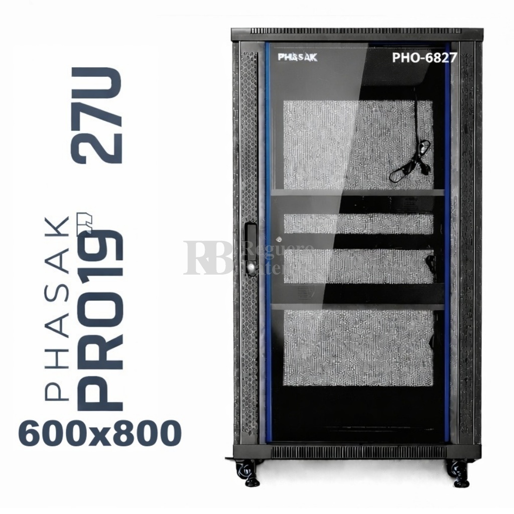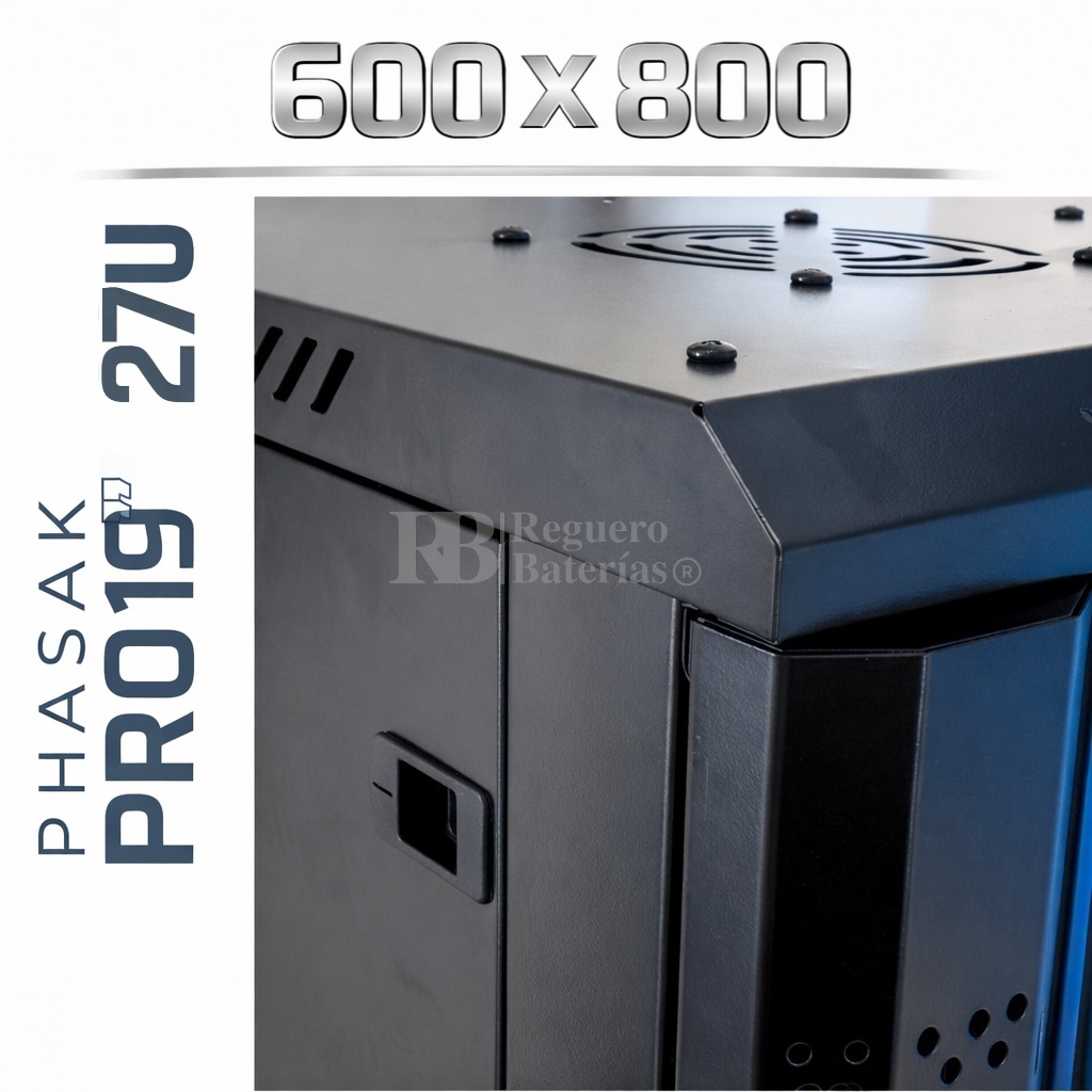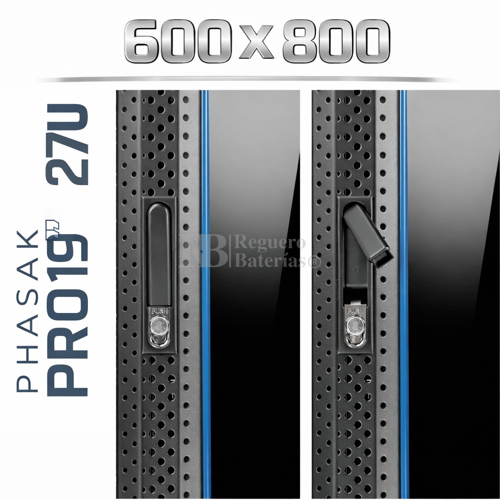 Armario Rack 19″ PHASAK Pro 27U de altura, Ancho 600 x Fondo 800 mm.