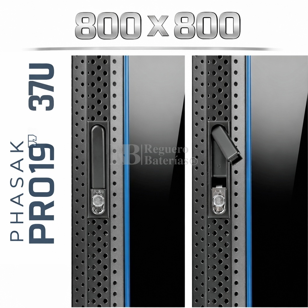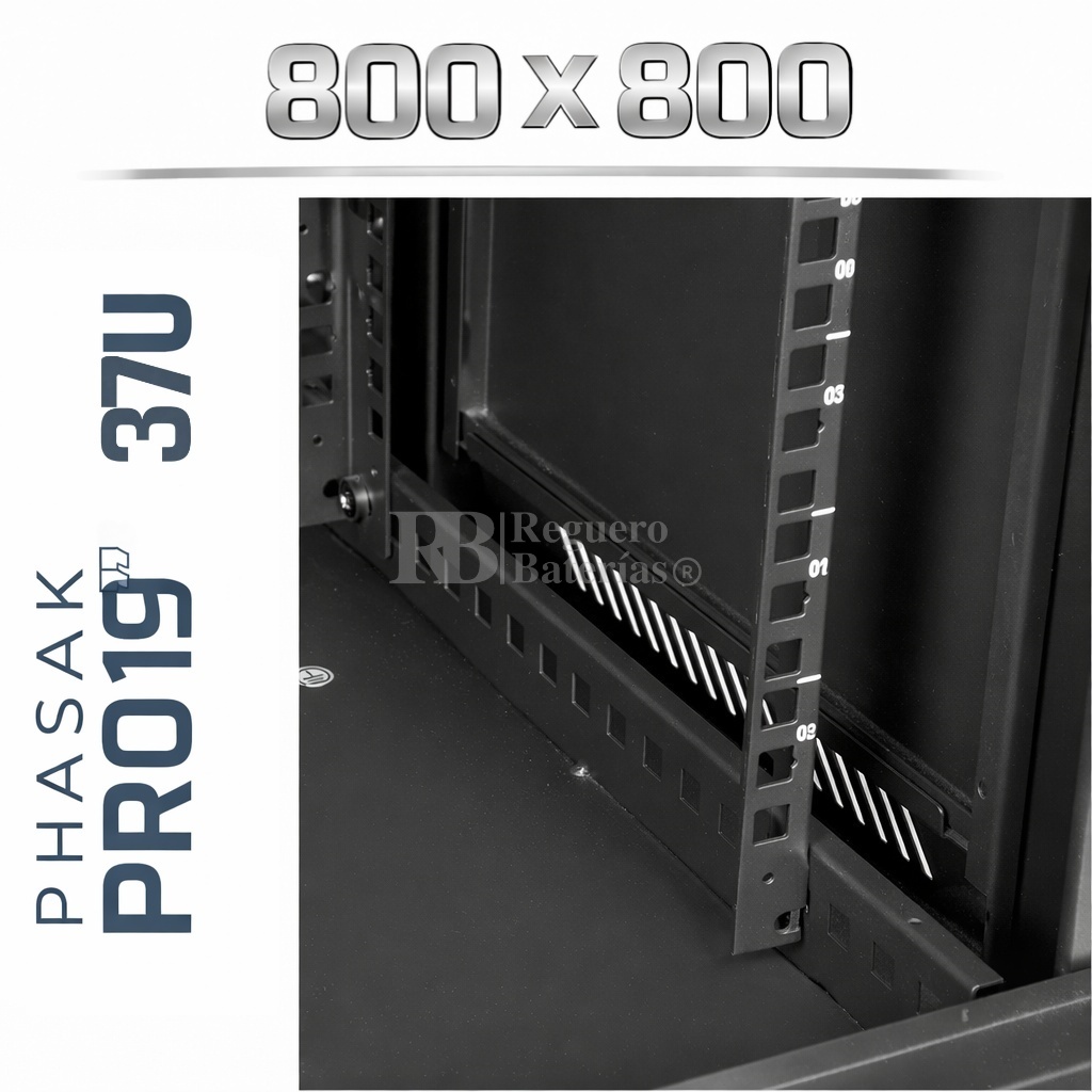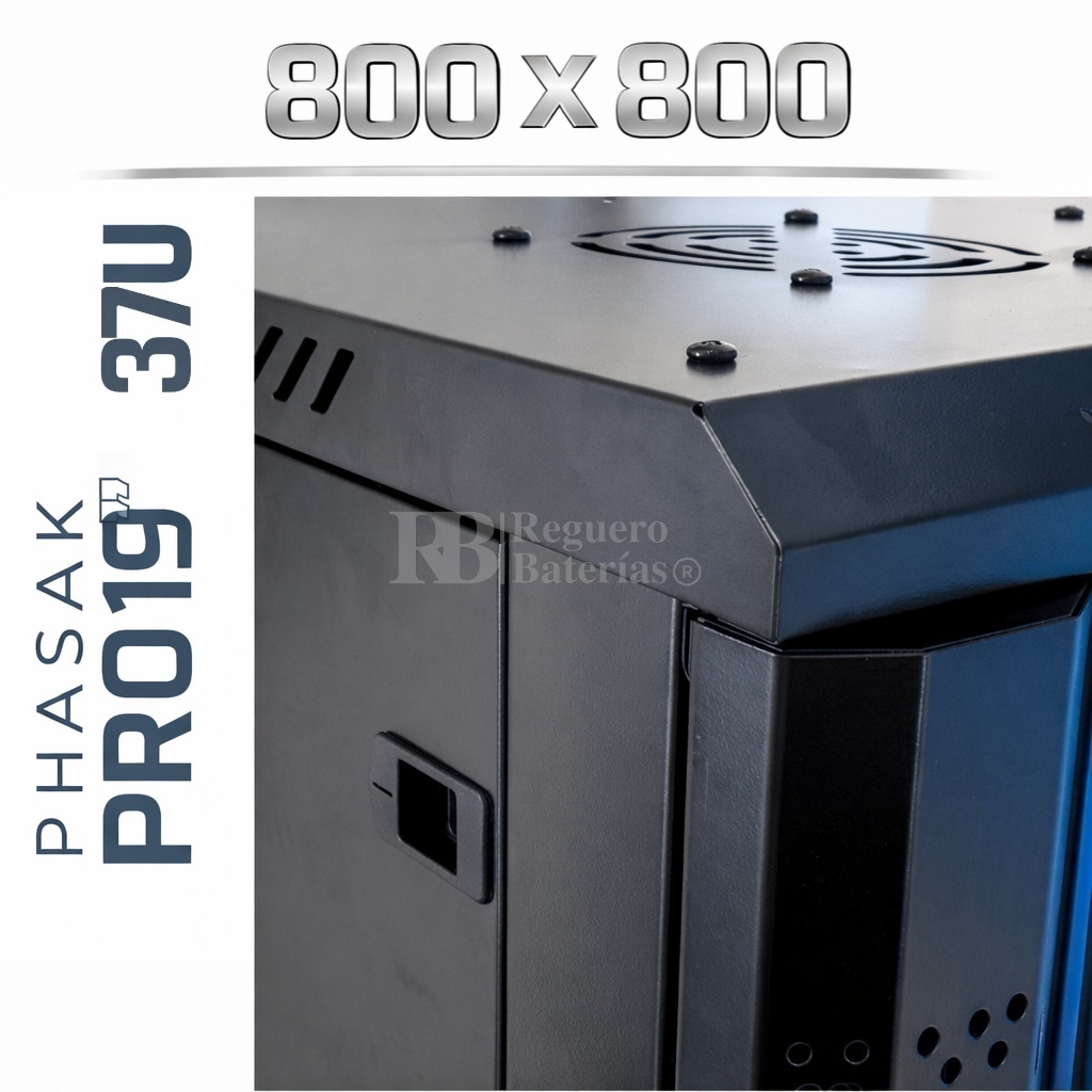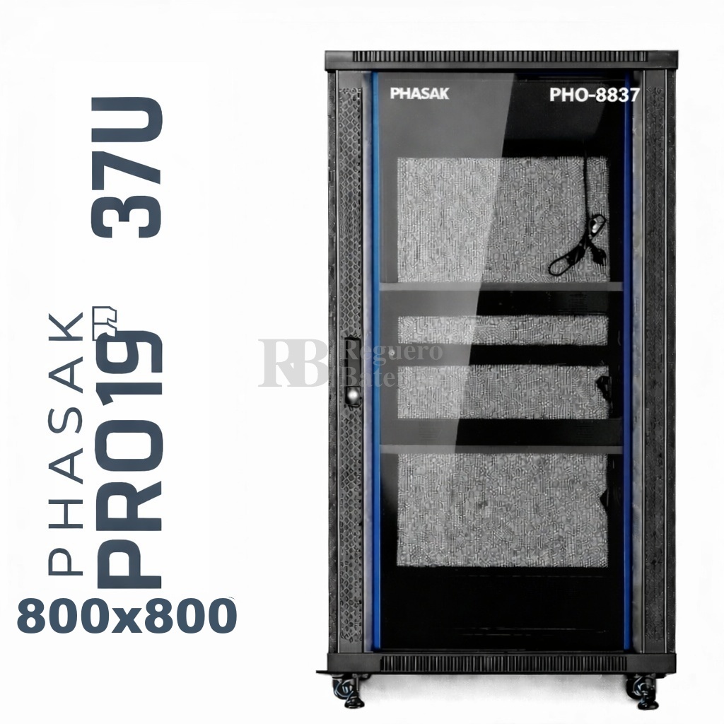 Armario Rack 19″ PHASAK Pro 37U de altura, Ancho 800 x Fondo 800 mm.