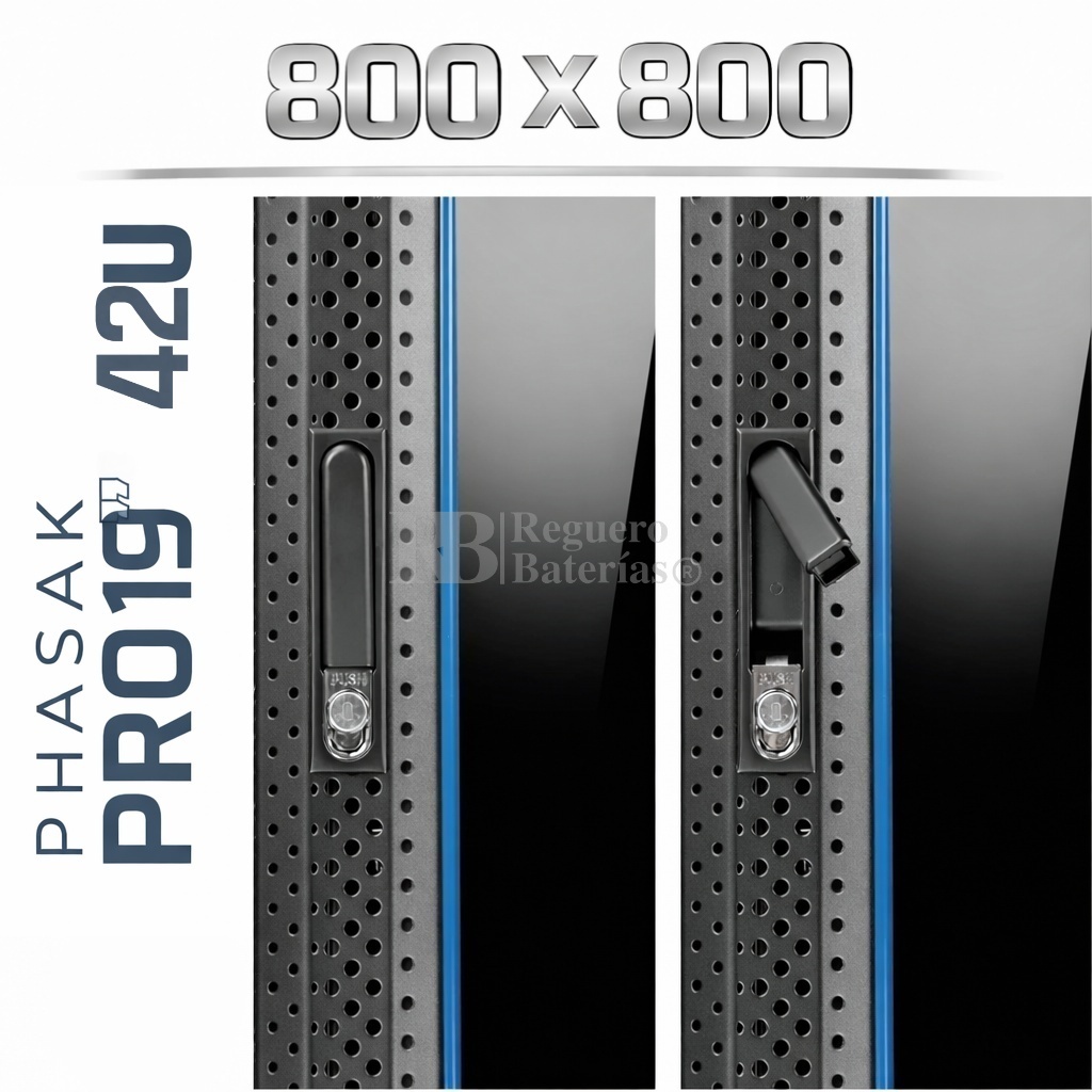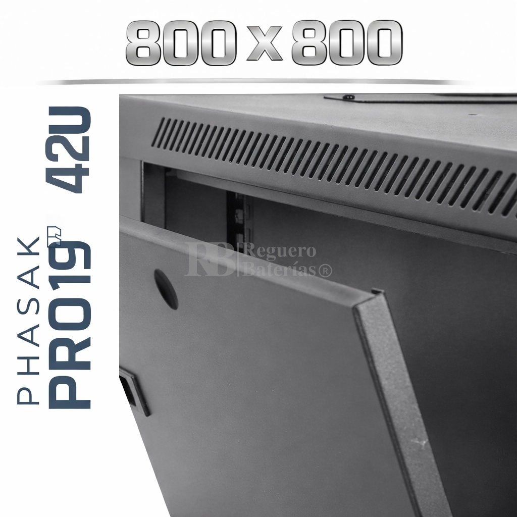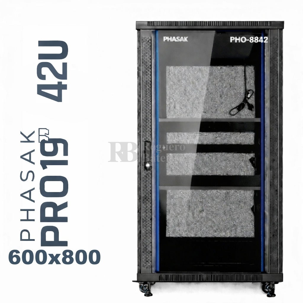 Armario Rack 19″ PHASAK Pro 42U de altura, Ancho 800 x Fondo 800 mm.