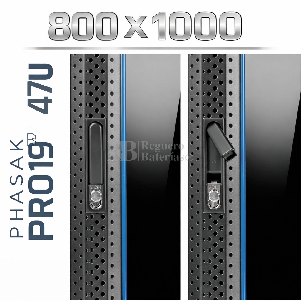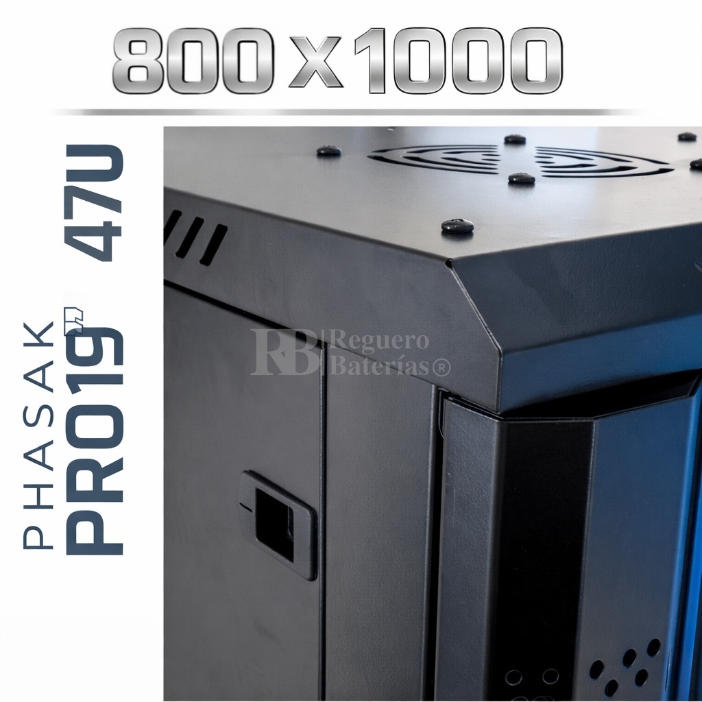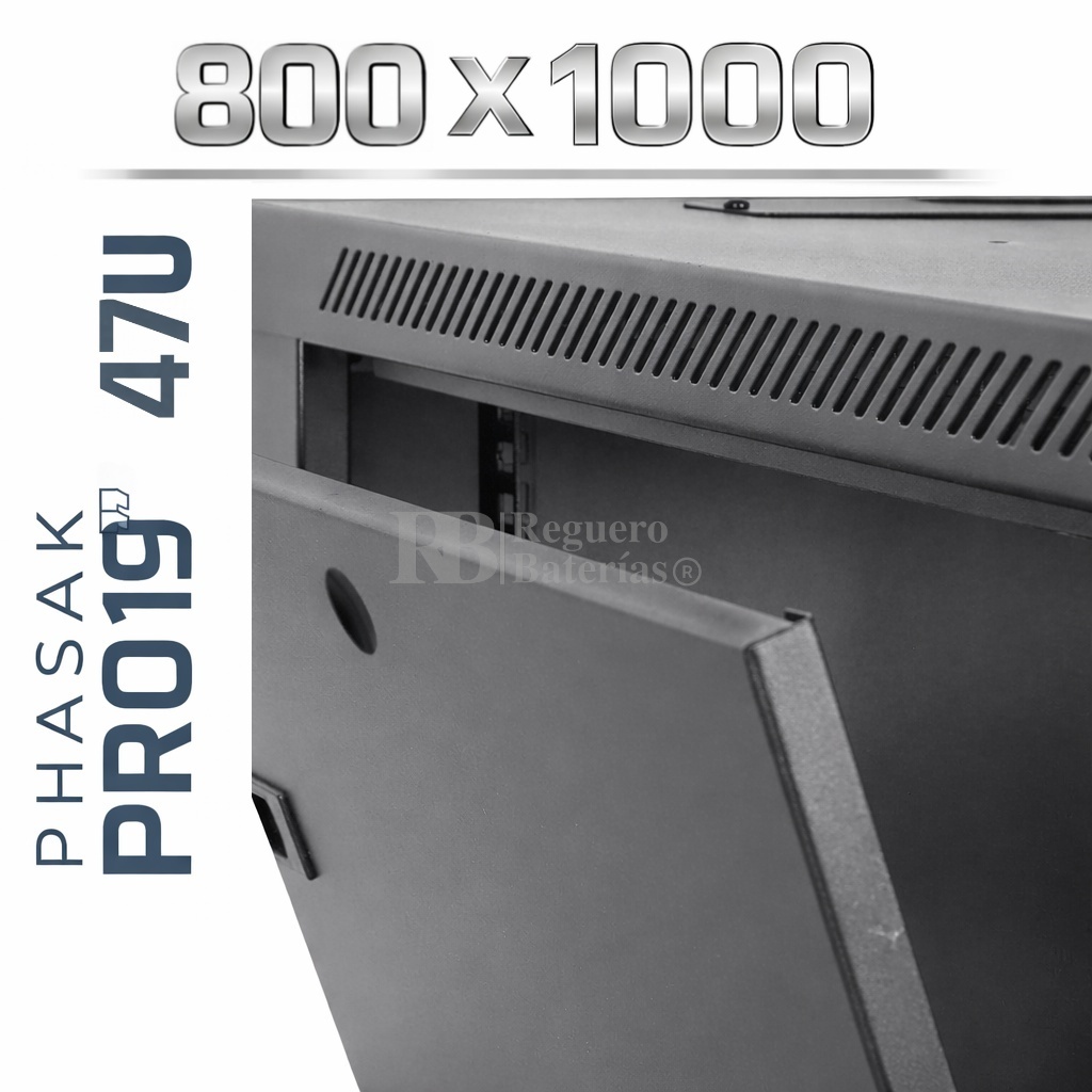 Armario Rack 19″ PHASAK Pro 42U de altura, Ancho 800 x Fondo 1000 mm.