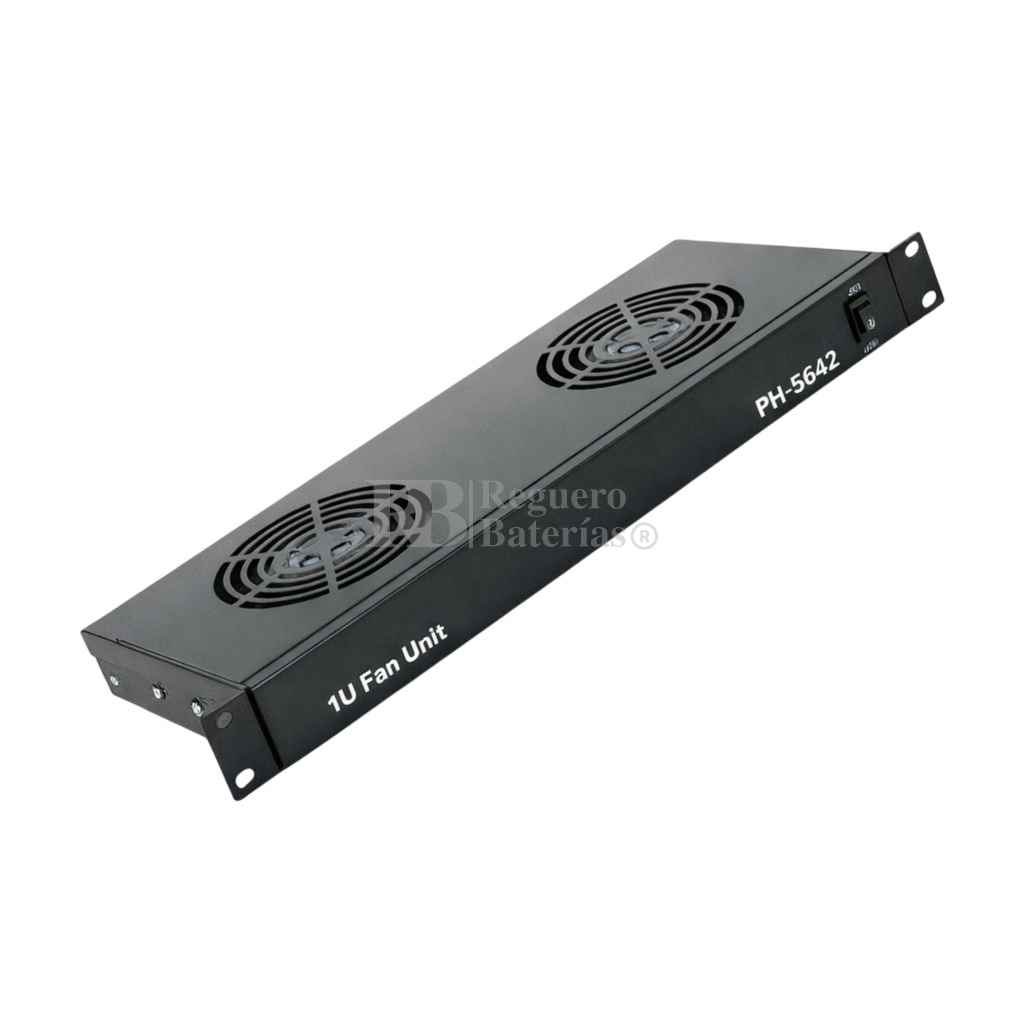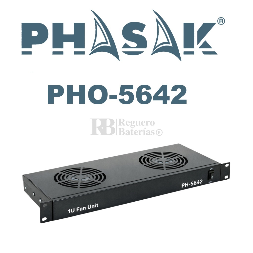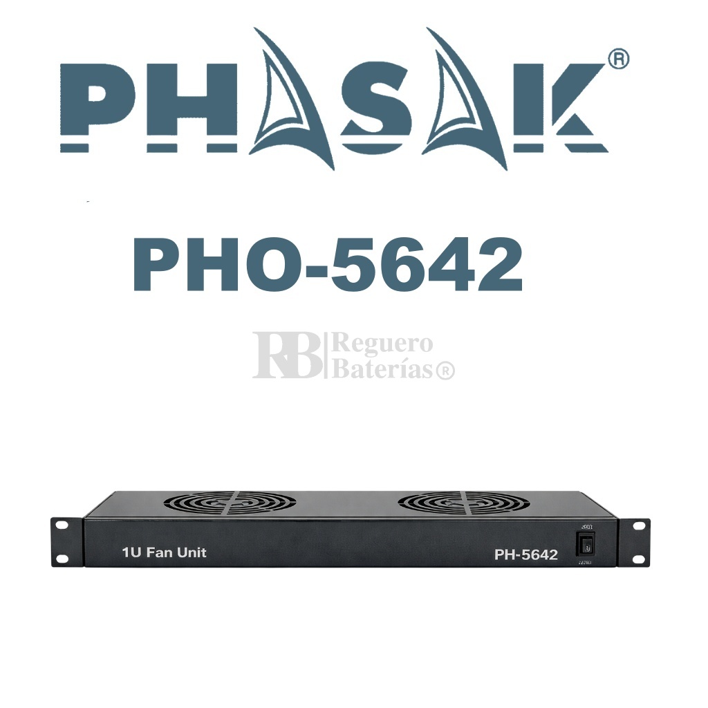 Unidad de ventilación en formato 1U diseñada para su integración en infraestructuras de rack estándar de 19″, específicamente compatible con la gama PHASAK PHASAK-PRO y PHASAK-PRO SERVER. Este sistema incorpora dos ventiladores axiales de 120 mm optimizados para proporcionar un caudal de aire eficiente y uniforme dentro del armario, favoreciendo la gestión térmica de entornos de alta densidad electrónica.