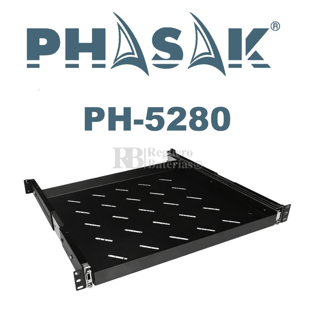 Bandeja fija en formato 1U diseñada para su integración en racks estándar de 19″ con fondo de 800 mm, pertenecientes a la serie PHASAK-PRO SERVER. Proporciona una superficie de soporte estable para la instalación de equipos no rackeables y periféricos dentro del armario.